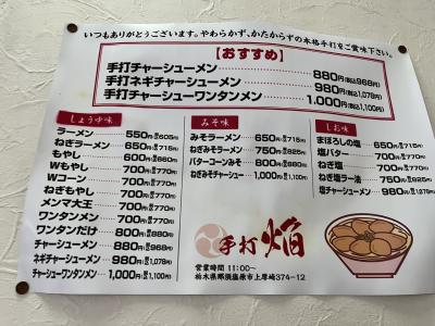 那須といっても黒磯の方ですが、白河ラーメンのお店が多いようで、すぐ近くにトラ食堂の分店もありました。那須で一番人気のラーメン店だけあり、営業時間は3時までですが、雨の日の平日でしたが、2時前に行くと待っている人もいて私達が帰る頃には閉店でした。白河ラーメンが大好きで、スモーキーなチャーシューなど味がどこかに似ている気がすると思ったら、火風鼎のご子息のお店の様です。白河ラーメンのイメージの手打ちチャーシューワンタンメン(1,100円)を注文しましたが、スープなどが、とて美味しくて行列して食べる気持ちがわかります。ただ忙し過ぎて店内の掃除は少し行き届いてないかなという感じでした。店内での時間を少なくするためオーダーは待っている時にとるようですのでメニューを決めておいた方がいいかもしれません。