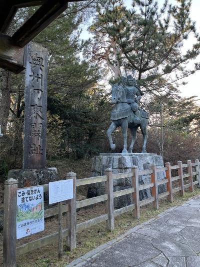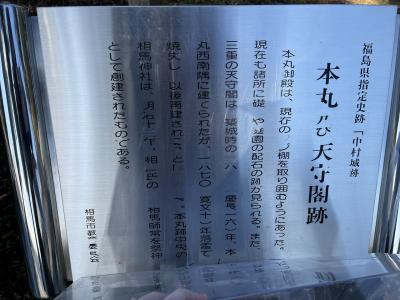相馬城址には相馬中村神社と相馬神社の二つの神社があります。小高くなった本丸があった場所にある相馬神社に登る道には、日本百名城の看板がありますが日本百名城のリストには載っていないようです。1611年に築城され1670年に落雷で焼失し再建されていない短い期間のお城だったようです。桜並木があるので桜の季節には綺麗そうでした。