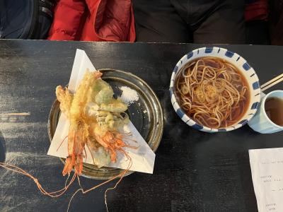 軽井沢のハルニレテラスある軽井沢の有名蕎麦屋さんの支店です。1月の平日だったので駐車場も空いていて平日駐無料でした。寒かったのでシンプルなせいろ蕎麦の他に上天ぷら蕎麦、鴨南蛮蕎麦を頼みました。家族が海老好きなので天ぷらが2匹になる上天ぷらにしましたが上天ぷらの海老のボリュームがすごかったです。もちろん蕎麦も美味しいし、鴨南蛮の鴨も柔らかくてとても美味しいお蕎麦屋さんでした。