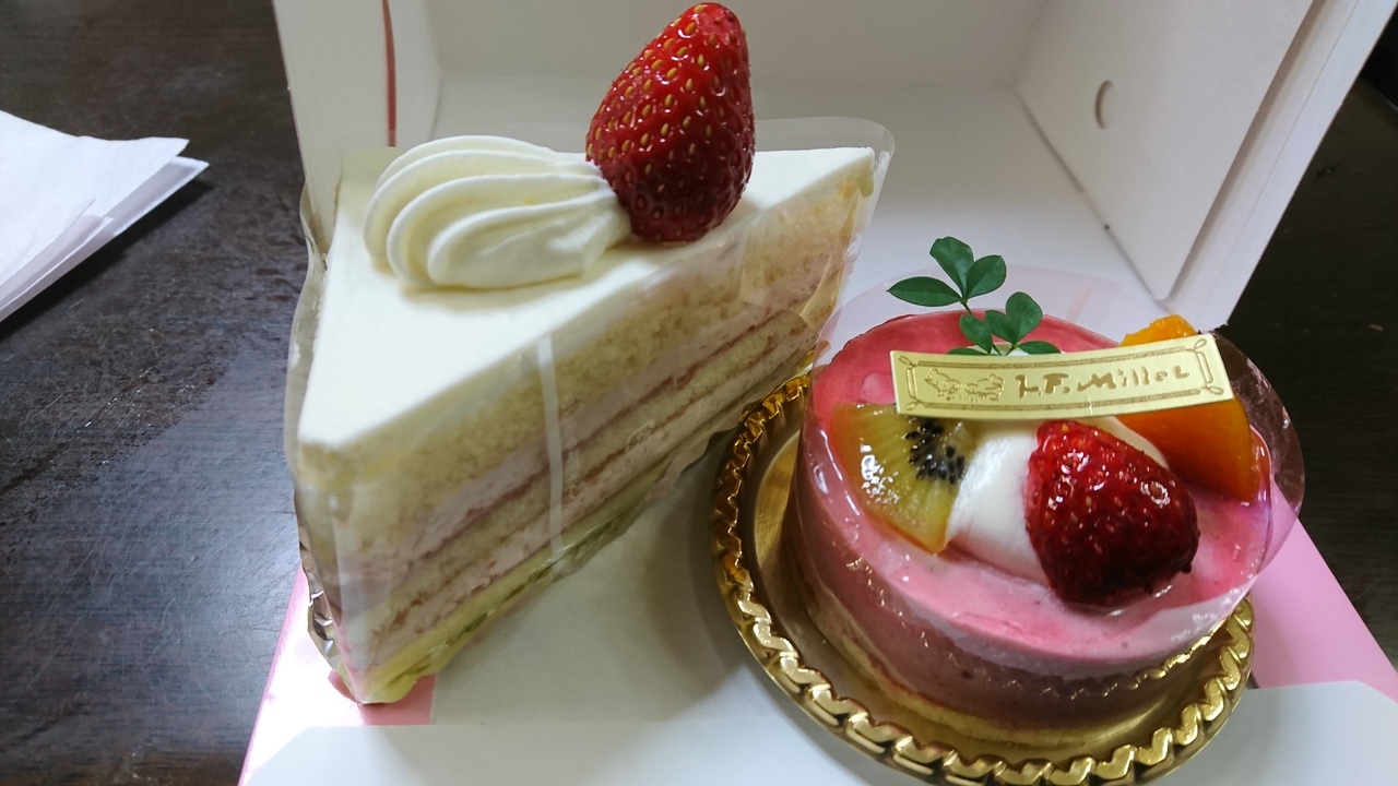 流山方面に用があっておおたかの森ショッピングセンターに超久しぶりに行きましたが、コロナストレスで甘い物に凝ってしまっているのでケーキ購入です。流山方面に3店舗ある(一店は江戸川台が最寄り駅ですが正しくは柏市です)のミレーさんは買った事がなかったので初挑戦でした。流山でケーキといえばレタンブリュスさんが有名ですが、ミレーのケーキもとても美味しかったです。