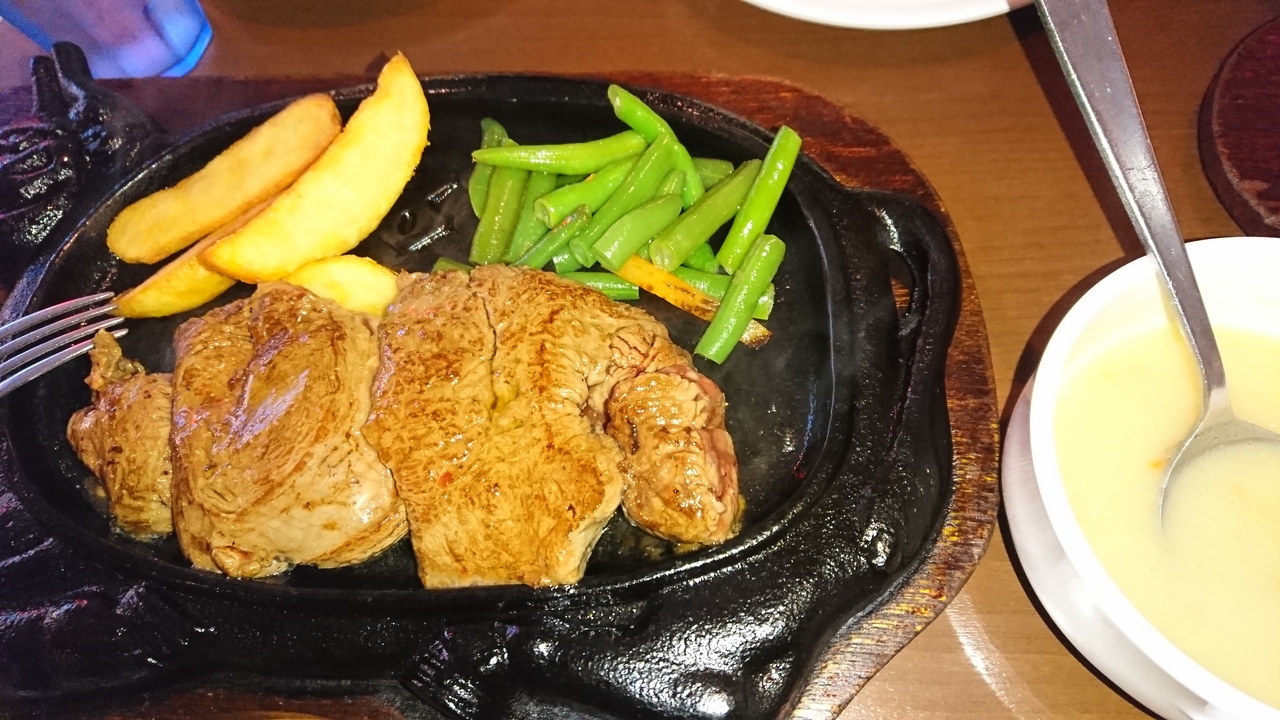我が家では沖縄といえばステーキのイメージなので他のステーキ屋さんにも行くのですが夕方に瀬底のヒルトンにつき本部の町なかのお店はしまっていたり、なんとなくどこに入っていいかわからなかったので、美ら海店に行きました。安定のお味で美味しいかったですがなんとなく店が暗い感じでした。