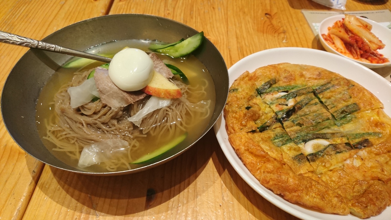 冷麺は麺を切ってくれたのですが少し長めで食べにくかったです。- 旅行時期