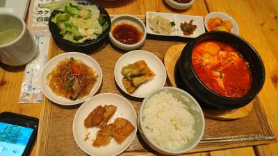 海外旅行にまだいつ行けるかわからないので外食に行く時は外国の料理が多くなってます。今回は韓国料理です。結構セットが多いので好みのセットを選べます。私は水冷麺とチヂミのセットにキムチをつけました。夫はチゲのセットにしましたがチヂミのタレもチゲ鍋も結構からかったです。