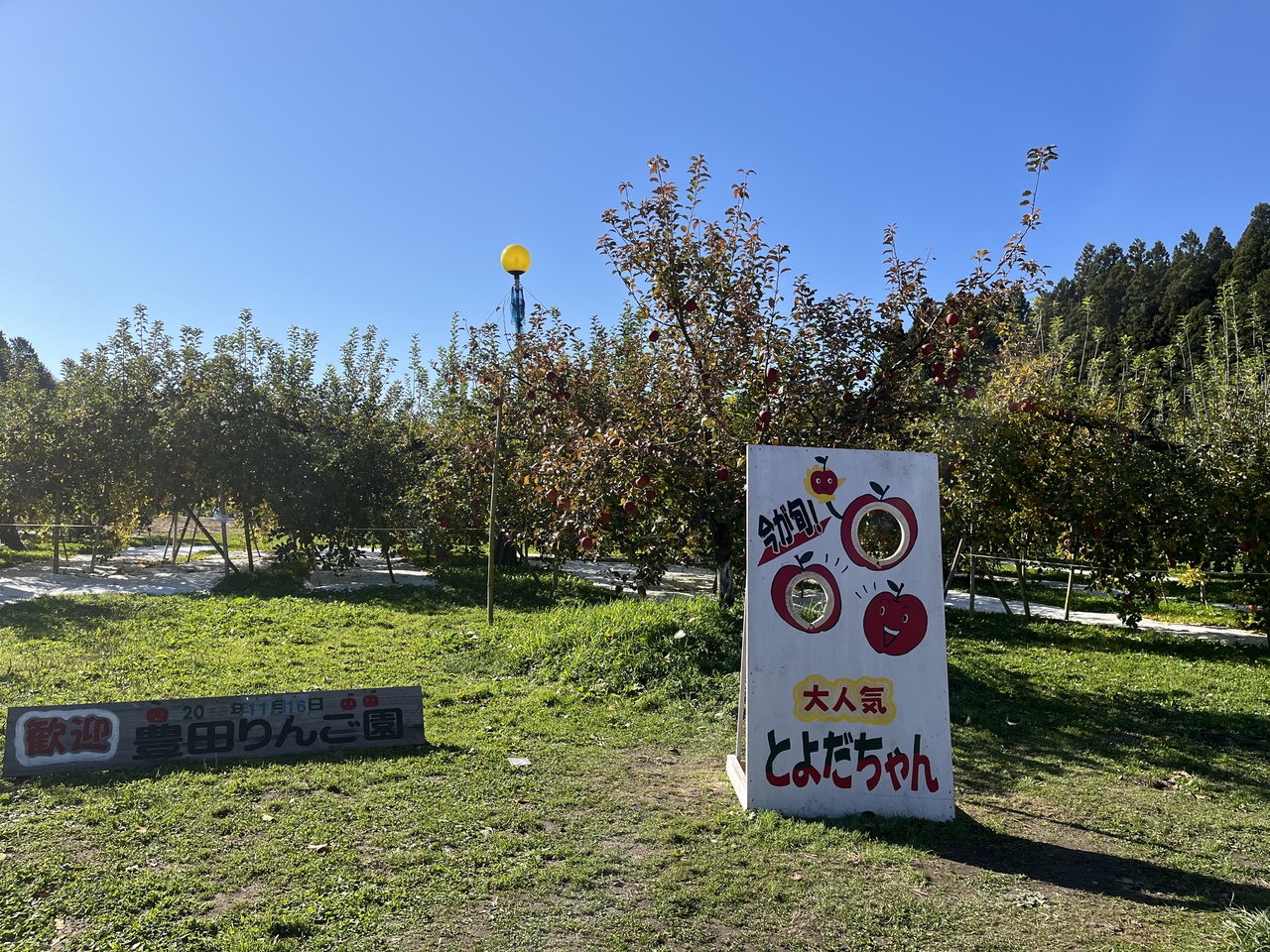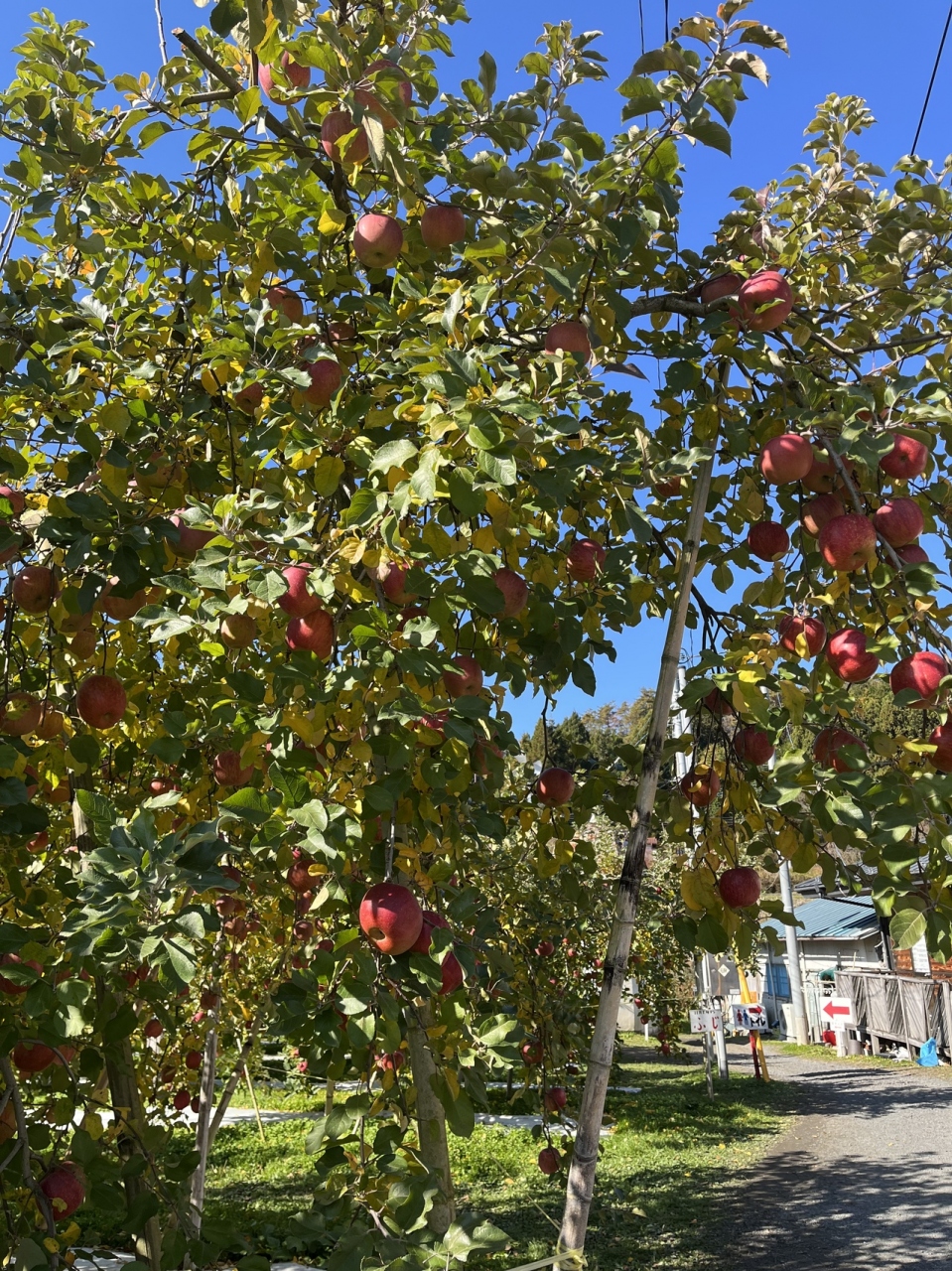 龍神大吊り橋から袋田方面に行く道にあるたぶん大子で一番大きなりんご園です。平日朝10時半ごろに行きましたが終わりかけですが紅葉の季節なので、団体客はいなかったのですが混んでいました。団体用のバスの駐車場もありました。。りんごは箱入りは私たちが行った時は売っていないみたいでした。コンテナの箱から自分の好きなりんごを値段ごとに袋に入れて会計するやり方でした。1キロ2,000円もする「こうみつ」という蜜たっぷりのかためな黒いりんごを多めに買ったので9,000円ほどになってしまって瓶のりんごジュースをサービスしてもらいました。とても美味しいりんごですがB級品のコーナーでなくても綺麗な形というわけではないので自宅様や仲のいい方にあげるには美味しいのでいいかもしれません。アップルパイも美味しかったです。