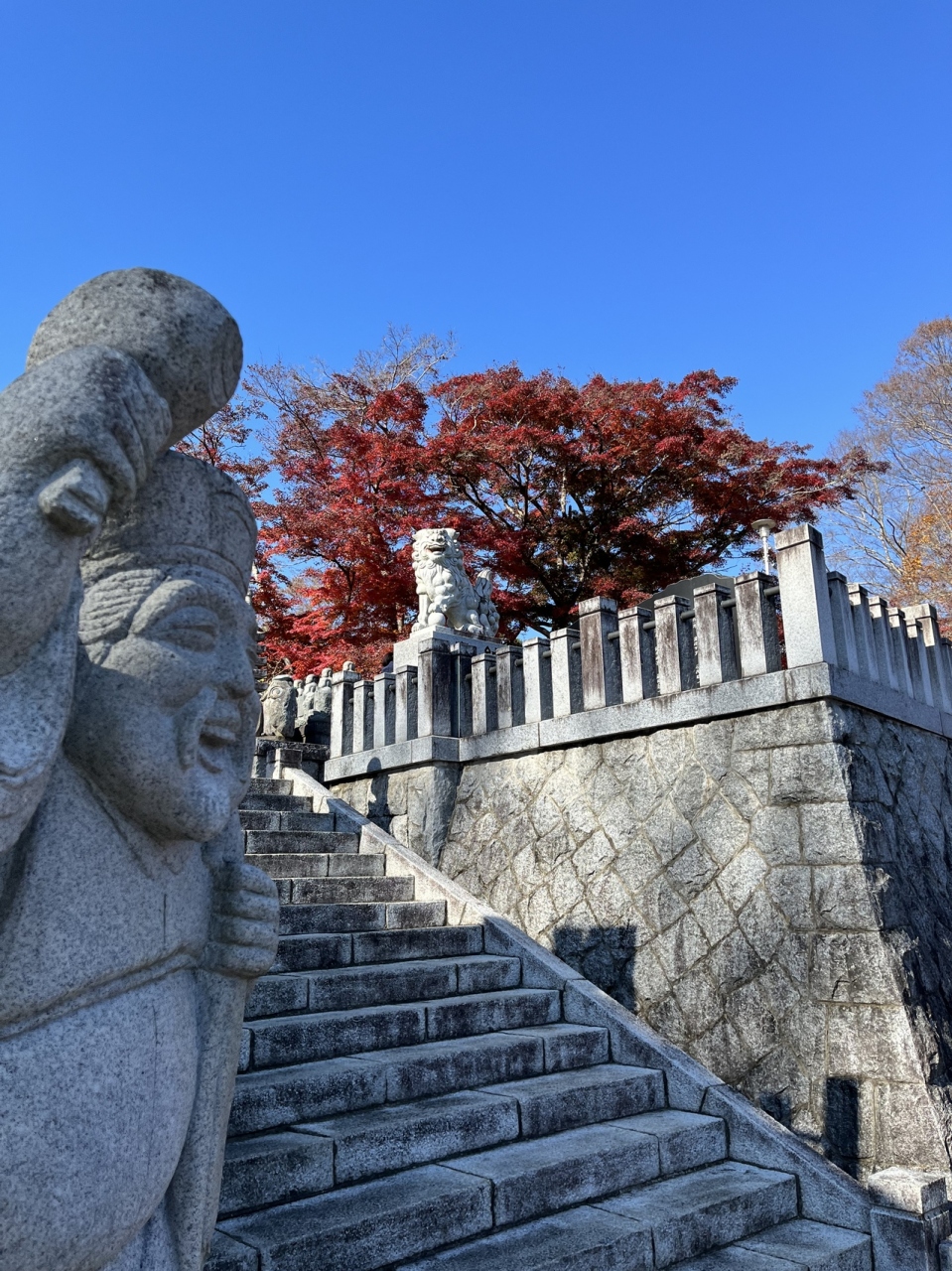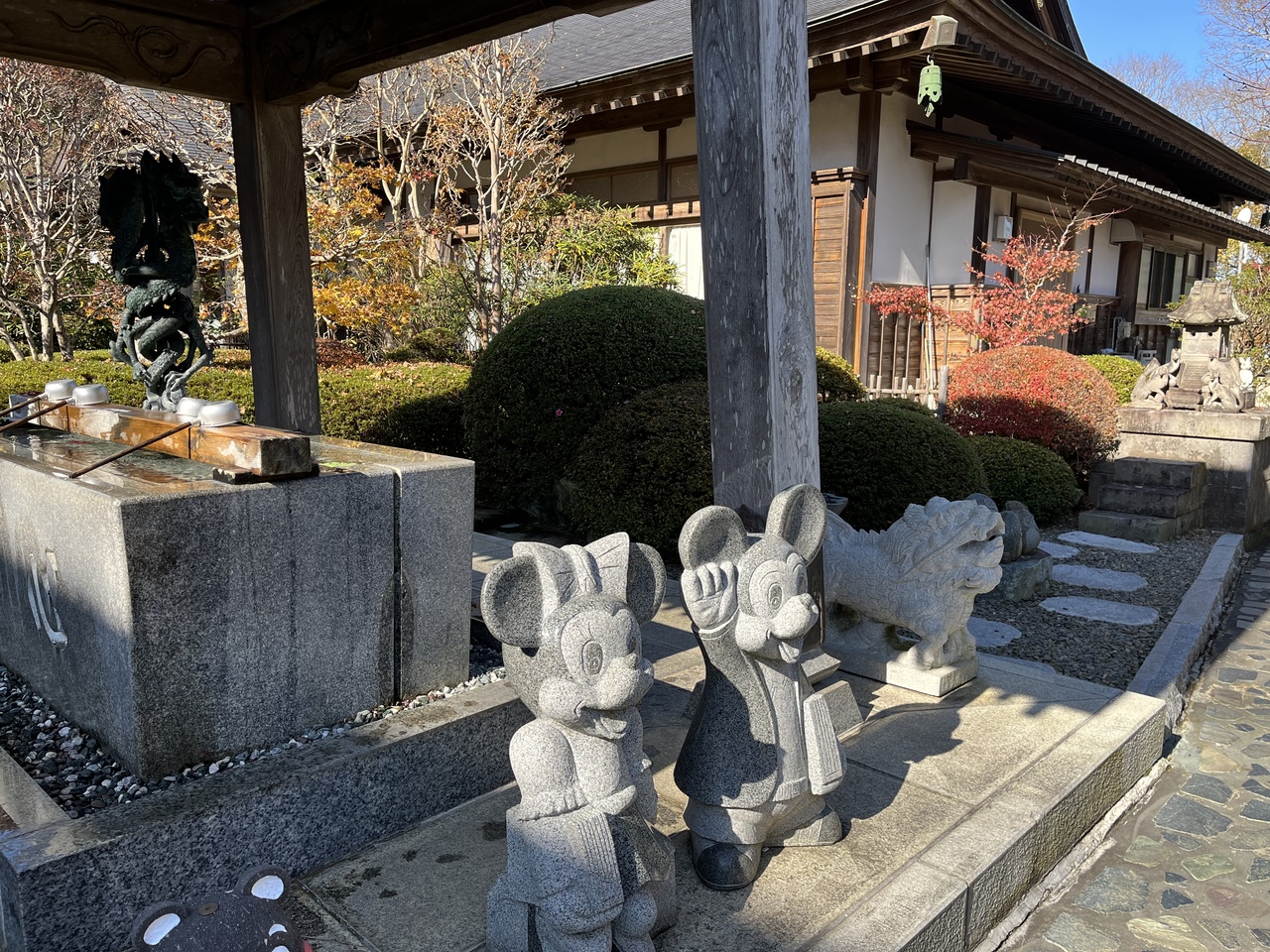 紅葉の寺として大子町では有名スポットなので紅葉の季節に龍神大吊り橋、袋田の滝に行ったら寄りたい場所です。紅葉の季節は駅の近くの駐車場に停めて10分くらい歩く事になります。私が行った時は終わりかけでしたが紅葉がたくさんありとても綺麗でした。石材店と仲がいいのか新しいそうなお地蔵様やミッキー、くまモンの石像などもあったりして紅葉と写真を撮るのもいいかもしれません。