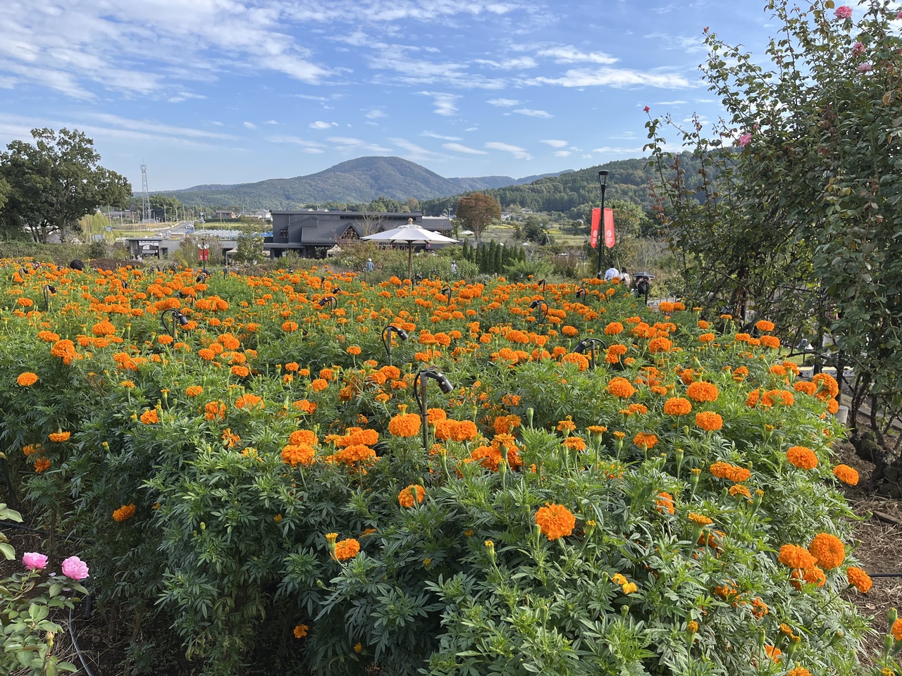 2021年にリニューアルされて、おしゃれな雰囲気のお店も増えて名前もひらがなのいばらきに変わっっています。バラの季節はもちろん綺麗ですが、やまゆり、あさがおなど他の季節にも花が咲きます。秋バラの季節はダリア、マリーゴールドも見頃でよかったです。
