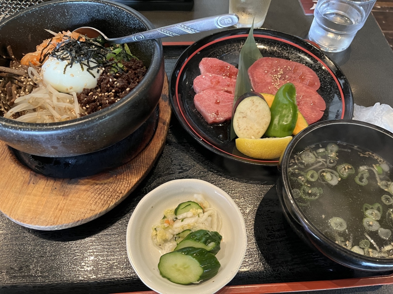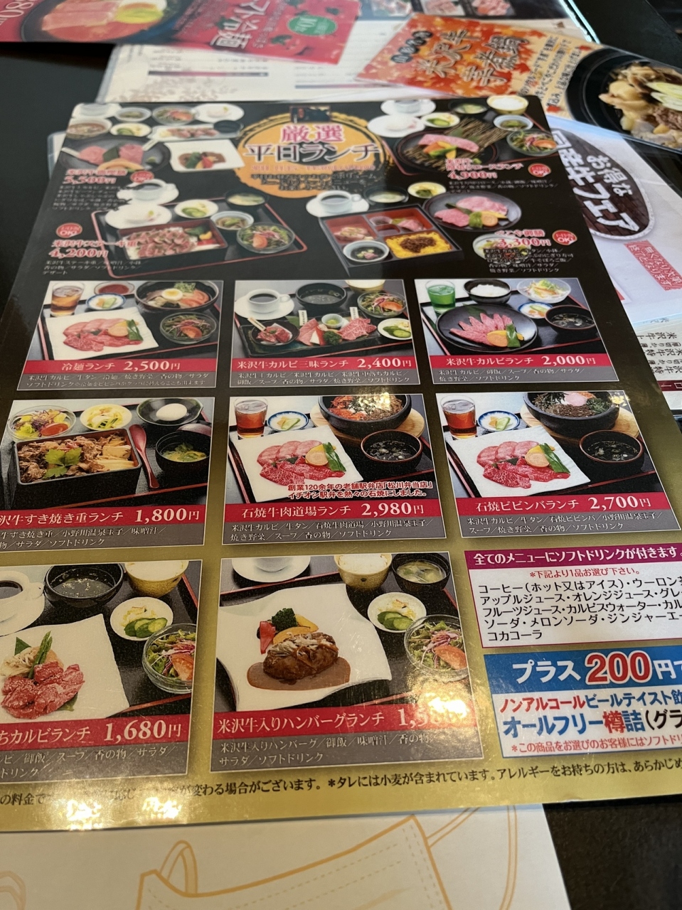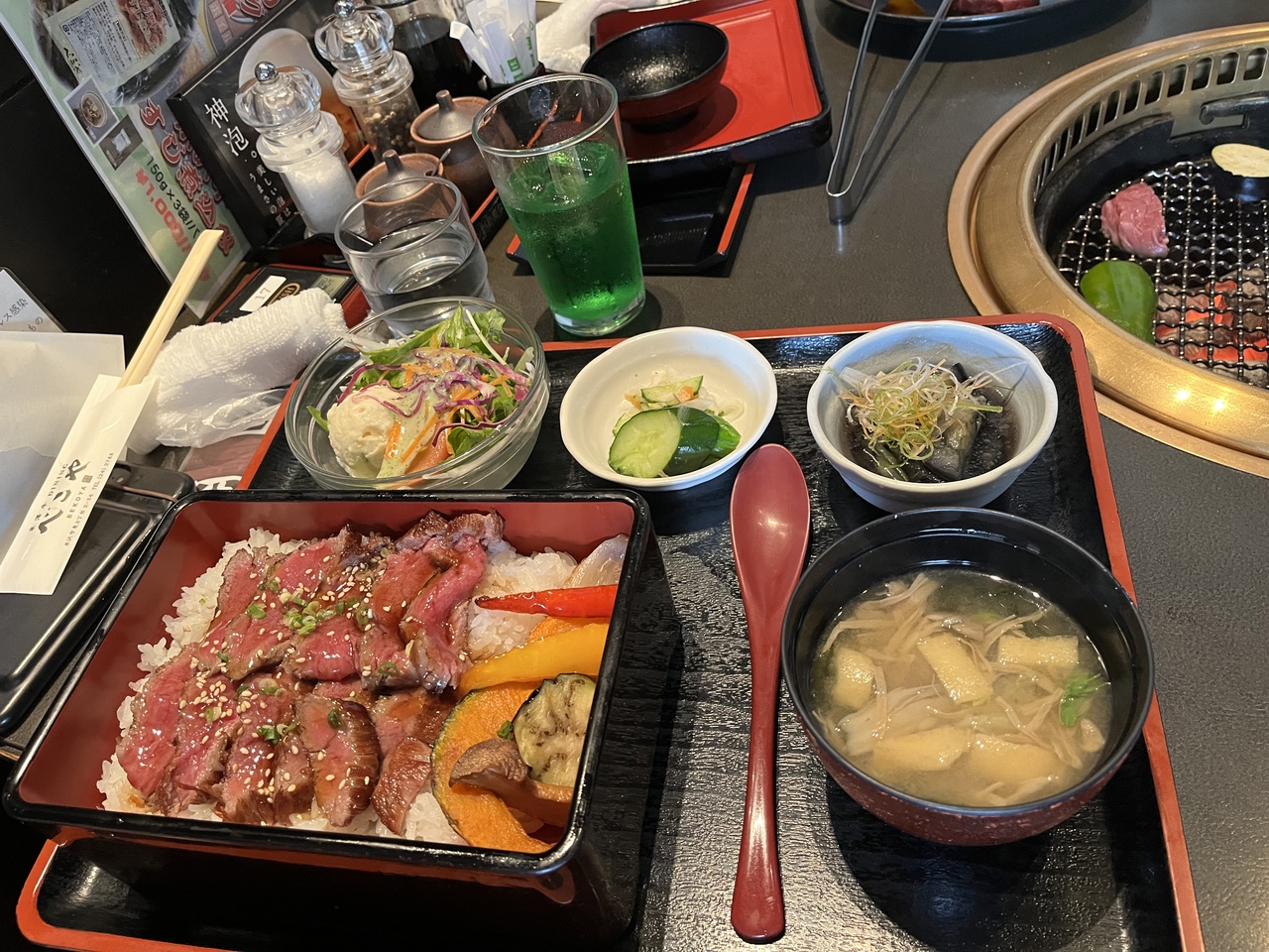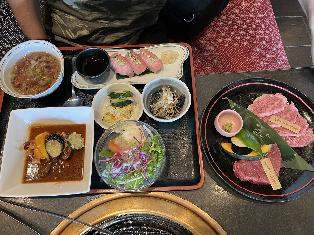 米沢駅から3分ぐらいなのでとても便利な場所にある米沢牛のお店です。逆に車だと台数が少なめなので駐車場がいっぱいの場合もあるかもしれません。店内は移築された古民家を利用しているらしく天井がとっても高くていい感じです。店に入ると焼肉なのか他のメニューなのかをすぐに聞かれ案内される席が違うようでした。ランチで頼んだステーキ丼が凄く美味しいかったです。米沢牛満喫御膳はカルビ、ランプの焼肉の他しゃぶしゃぶの握り、ビーフシチューなどがついて色々味わえ豪華ですが、ご飯物が少ないのでたくさん食べる方には少ないかもしれません。頼んだセットのメニューのうちビビンバのセット以外は休日でも頼めるランチセットです。米沢牛を美味しく食べる事のできるいいお店でした。