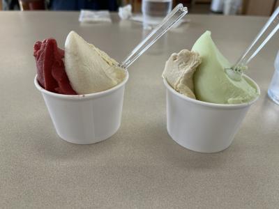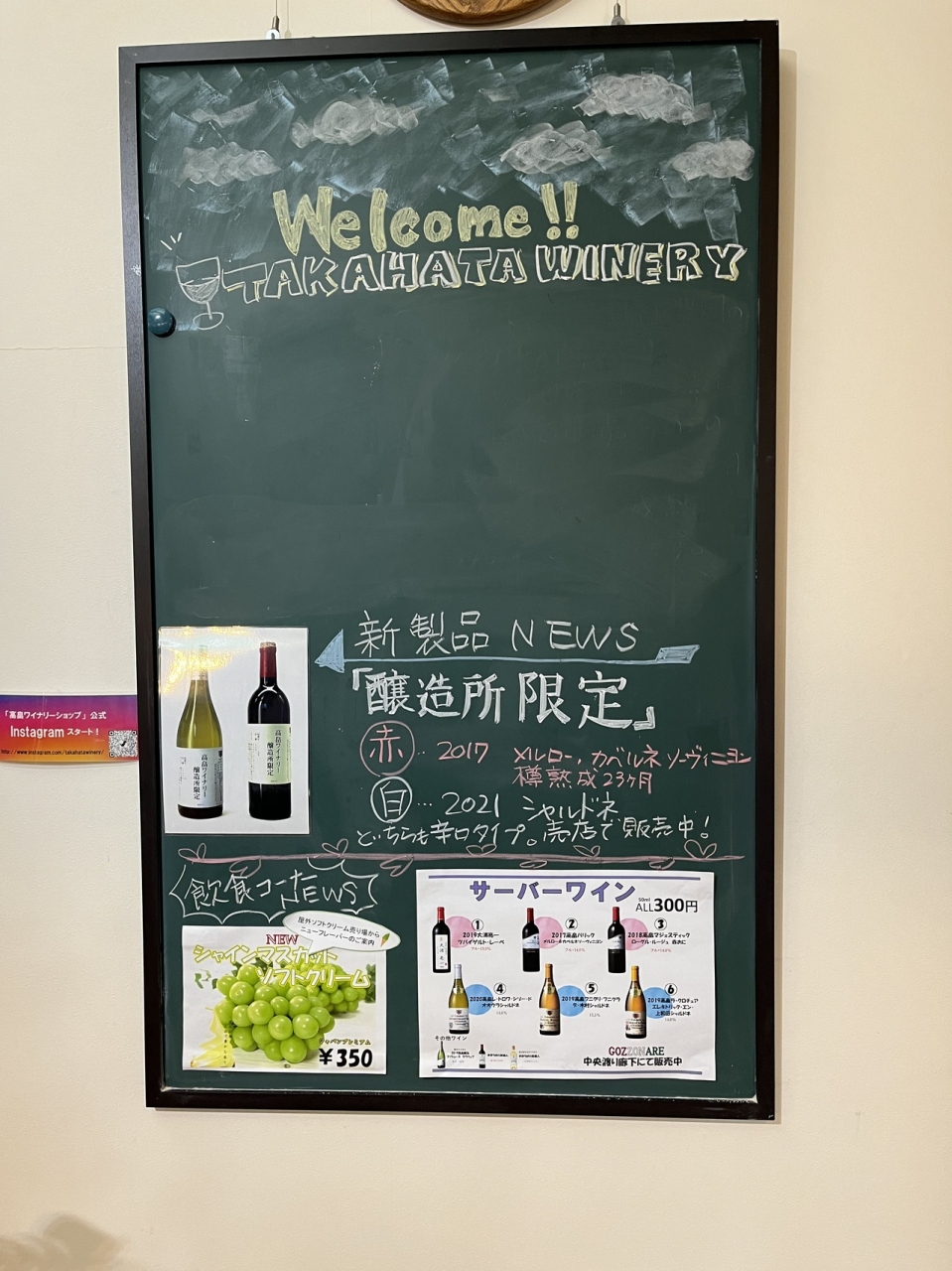 高畠ワイナリーは、新幹線の高畠駅からも徒歩圏で、駐車場もたっぷりありました。勝手に見る感じですが、工場見学もできます。ワインは有料の試飲300円と、無料の試飲がありました。無料の試飲は甘口と、極甘がありましたが極甘はお子ちゃまの味覚で甘口好きの私でもちょっと違うと思う甘さでした。バスなどもくるのでレジは結構混み合っていました。外のシャインマスカットソフトクリームにちょっと惹かれましたが、御用の方はブザーでお呼びくださいと書いてありましたが、呼んでまでとは思ったので食べてはいません。ワインはたまには飲みますが、余り高級な物は買えないので、お手頃価格のワインが多めで嬉しかったです。