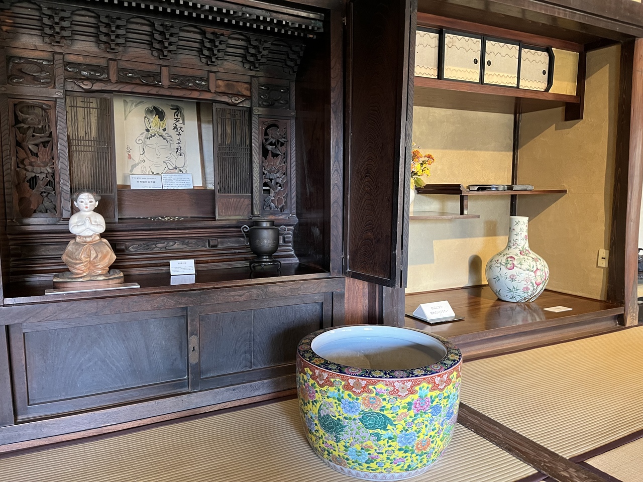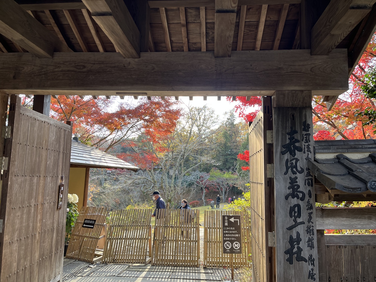 魯山人の鎌倉にあった邸宅が移築された日動美術館の分館です。日動美術館の半券で200円引きになります。通常料金の方は自販機ですが、色々な割引料金の時にはインターフォンを押して係の方が離れた建物の入り口まで案内してから払うシステムだったので、受付が混み合っていました。普段はそのシステムで大丈夫なのかもしれませんが、紅葉の季節に加えて数日前に依田さんの天気予報で紅葉が素敵ですと放送されていたので、なおさら混んでいたのかも知れず駐車場も混んでいました。邸宅の中は魯山人の焼いた便器や魯山人のお皿などもありました。邸宅の中の雰囲気も素敵で、茶室からは京都龍安寺を模した枯山水が素敵なのでゆっくりしたいところですが人も多いので、早めに切り上げ、紅葉などが素敵な広いお庭の散策を楽しみました。