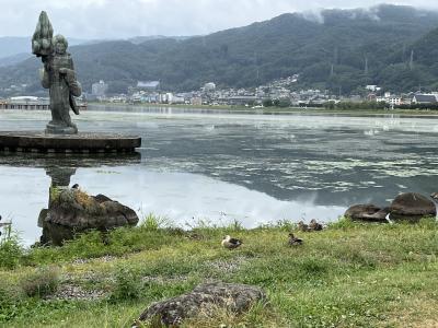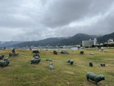 諏訪湖の湖畔のホテルに泊まったので、諏訪湖湖畔にある諏訪湖畔公園を散歩させていただきました。石彫公園の別名の通り石でできた羊のモニュメントがいっぱいあったり。スケーターの彫像があったりする湖畔に広がる広々とした公園です。周りには幾つか無料の駐車場もありました。カモがいっぱいいて人慣れしていて掴めるほど近くに行くまでは飛び立ちもしないほどでした。