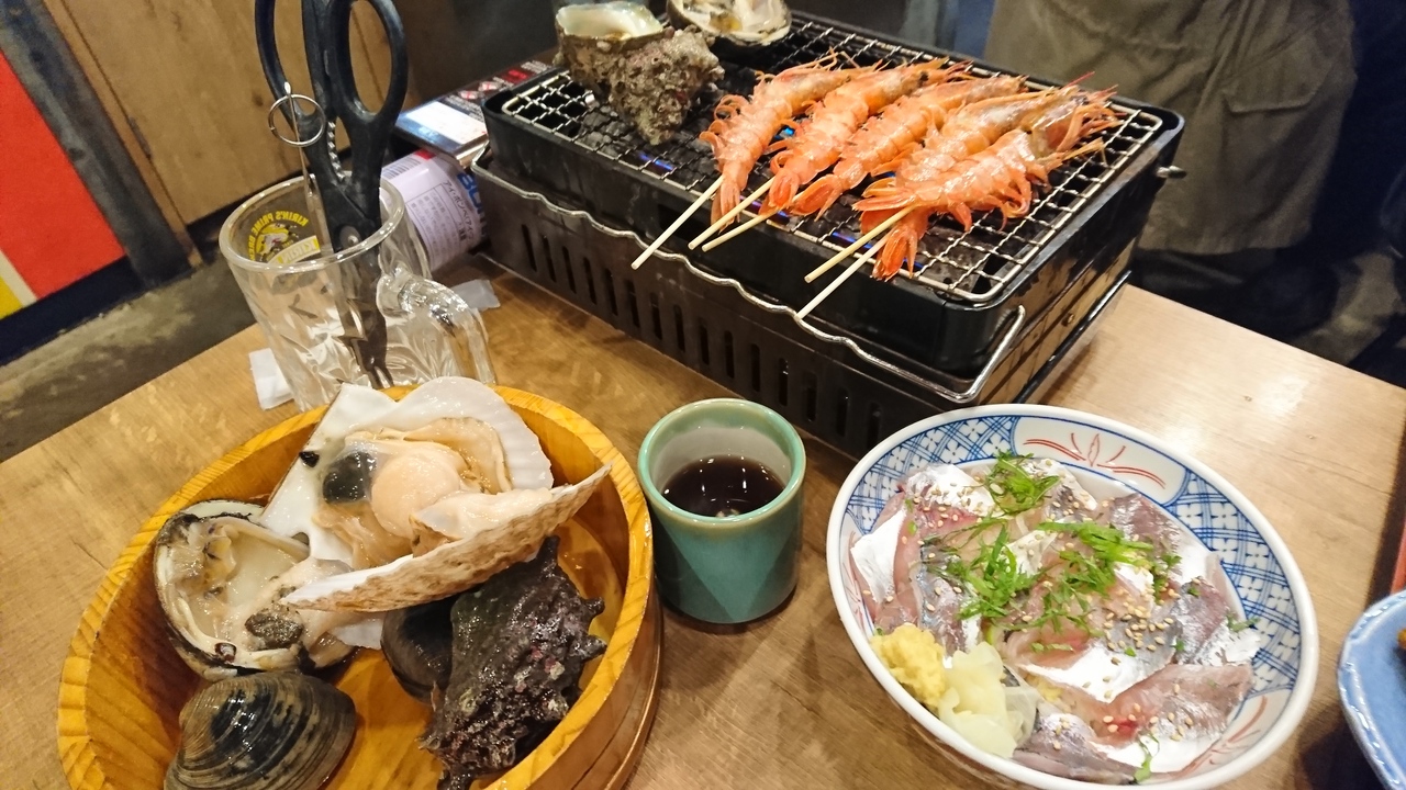 日曜日に横須賀方面に用がありどぶ板通りを通りましたが、昼間からあいている店はハンバーガー屋さんなどが多くてちょっと魚気分だったので駅前のとても便利な場所にあるチェーン店の磯丸水産さんに行ってみました。休日の昼間から飲んでいる人が多くご機嫌に出来上がっている人が多かったです。昼間は安いお酒や定食もありコスパはいいと思いました。貝焼きも美味しかったです。