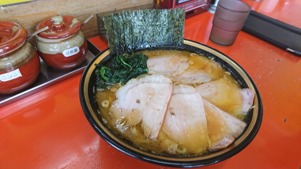 木更津の小さい方のイオンのそばにある千葉では老舗の横浜家系ラーメンのラーメン屋さんです。暑い日に行ったので冷房は効いておらず暑かったのですが、店内は混んでいなかったのでよかったかな。コラーゲンたっぷりのスープであっさり目のチャーシュで美味しかったです。並でも海苔が3枚のっているのですが、自販機の券売機のトッピングにも海苔がありそれを選ぶと10枚増しになり海苔だらけになるみたいです。