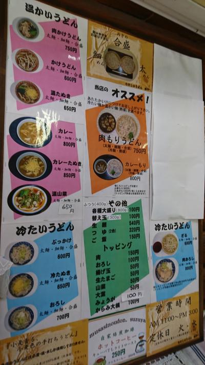 千葉なのに武蔵野うどんのお店で、農産物直売所の敷地内にあるのですが直売所よりうどん屋さんの方が混んでいます。店の中に入って注文をして番号札をもらって出来上がりは持って来てくれました。ログハウス風の外観で店内は安っぽい作りです。つけ麺の肉うどんとカレーうどんにして太麺と細麺のあい盛りを頼みどちらも美味しかったですが、細麺でも普通のうどんより太いのですが太麺の太さにはびっくりしてしまいました。
