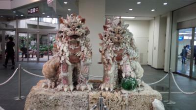 宮古島空港の中にあるシーサで、結構迫力のあるシーサです。貝殻やレンガなどが使われていてよく見る茶色ののシーサとはちょっと色のせいか違った印象です。空港の中にあり割と大きいので人との待ち合わせ場所にいいかもしれません。