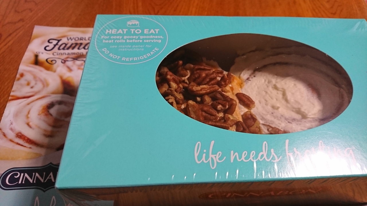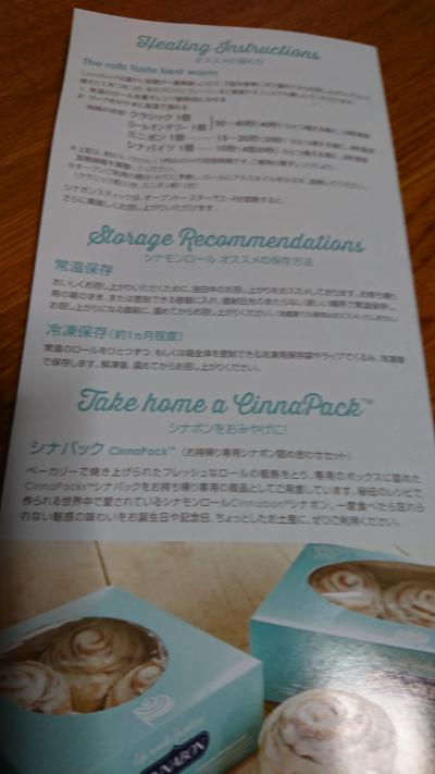 ハワイなどで食べたアメリカンな味がが恋しくなったりしたら、、ららぽーとの中にあるシナボンも良いですね。時間がないときはお持ち帰りが出来るので、いただいたパンフのとおりにお家のレンジで温めたら美味しかったです。賞味期限は短いですが、冷凍すると1月ぐらい保存可だそうです。