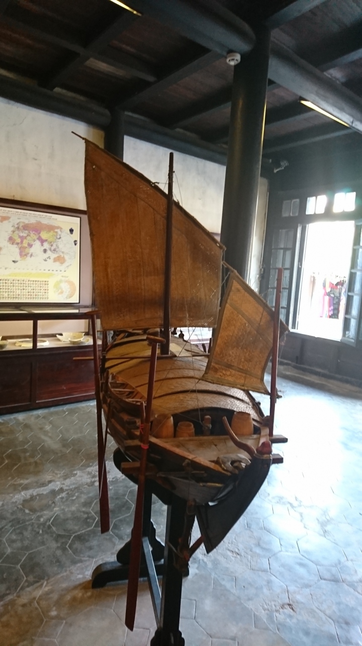 チケットが必要なホイアンの古民家のひとつですが、入り口を入ってすぐに船の模型が飾られていて中には貿易で運ばれてきた、日本など外国からの陶磁器などが飾られています。昔の人の生活を再現するためのマネキンはちょっとシュールな感じになってます。