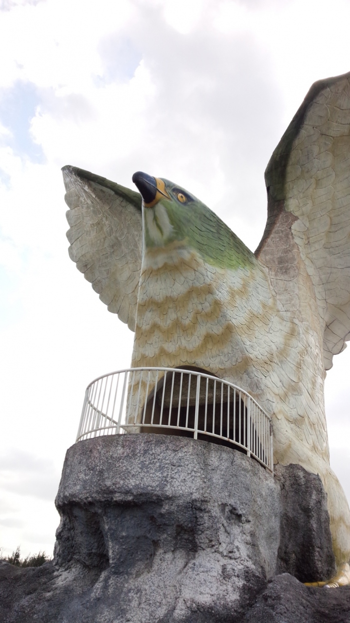 サシバという鷹の一種の形をした、船を見送る岬という名の展望台です。ここからも綺麗なコバルトブルーの海が見えます。沖縄離島の展望台は色々な形をしていてどこもいい景色なので展望台をまわって写真コレクションにするのも面白いです。