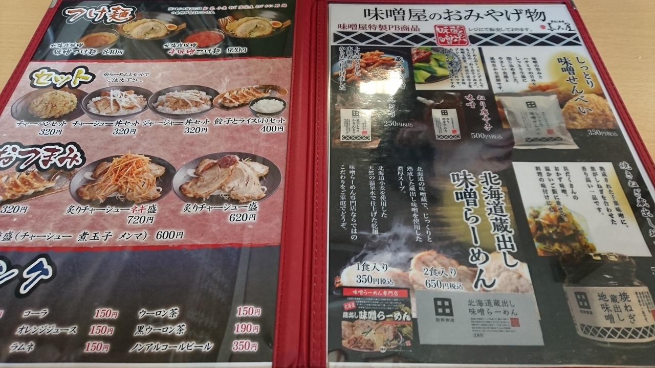 千葉県でよくある田所商店という味噌ラーメンのお店があるのですが、外観も味噌樽がのったデザインでそっくりです。中のメニューも北海道味噌、信州味噌、九州味噌、などと味噌のグループにわかれているところもそっくりでした。お持ち帰りのできるお菓子などに田所商店のものもあったので聞いてみたら暖簾わけのような感じのお店だそうです。信州味噌ラーメン、北海道味噌ラーメンを食べましたが美味しかったです。