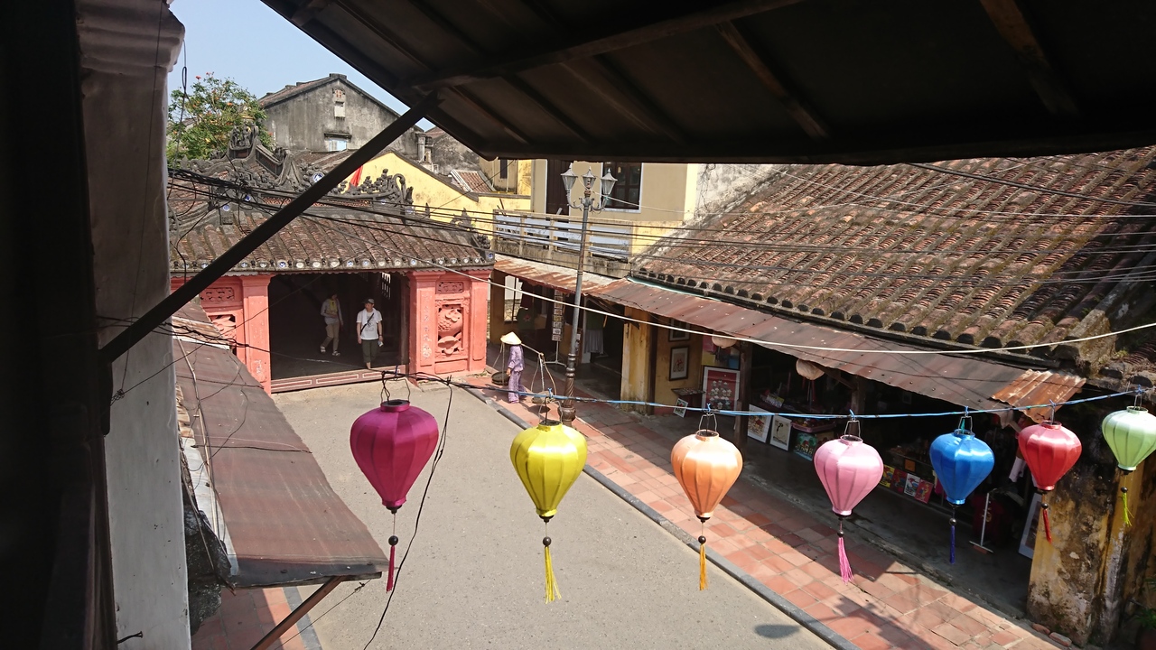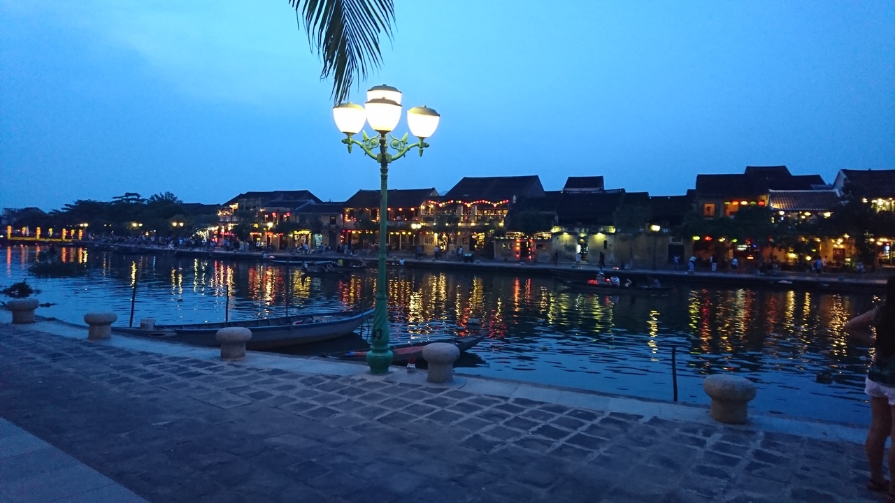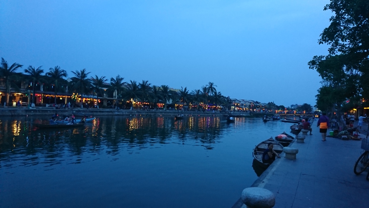 船着き場などを通るホイアンの旧市街の一番川沿いの道です。昼間は川も余り綺麗ではないし市場にの裏手などを通るし、船の勧誘も次から次へとありますが一度断るとそれ以上は言わないのでまあましです。でも昼は通らなくていいと思いますが、夕暮れ時や夜になると川面に映るランタンの光など凄く素敵な雰囲気です。