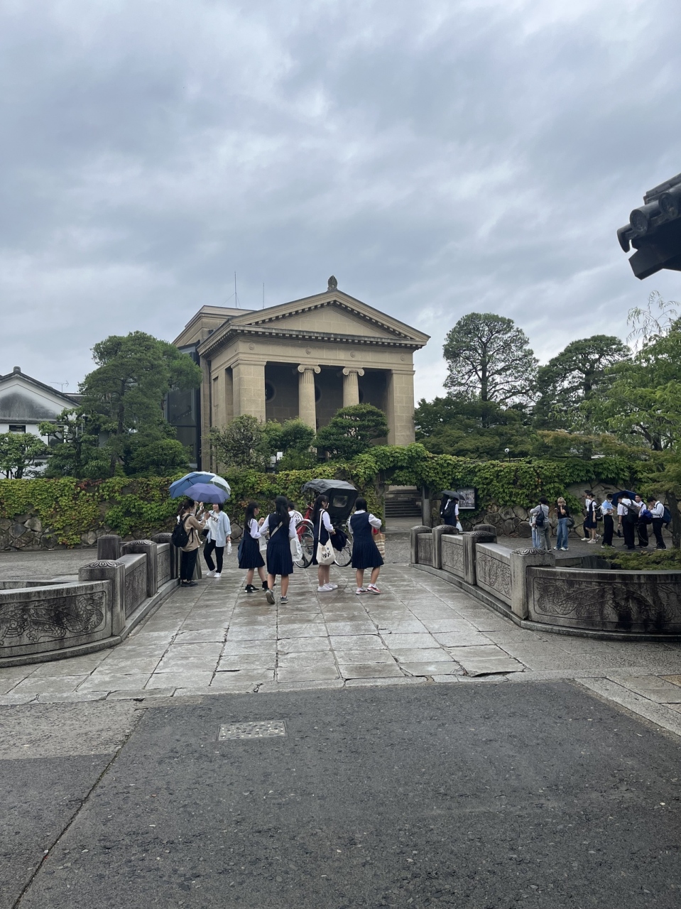 美観地区地区よりは空いている場所にあるのですが、ルネッサンス風の洋風建築でアーチ窓のステンドグラスなどが素敵な建物で大原美術館を設計した人が設計したようで倉敷美観地区の雰囲気ととても合っています。今は銀行としては営業していないので外観のみの見学となります。y