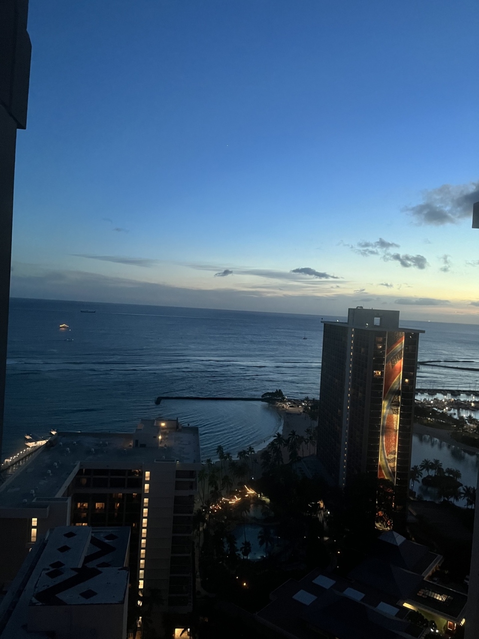 ヒルトンハワイアンビレッジというだけあり、本当にここだけでひとつの村の様に幾つものホテルのタワーとタイムシェアがあり、ここだけでも敷地が広くて結構楽しめ、スタバも2軒ありますが、どちらも朝は行列です。広いのでプールもいくつかあり、砂浜も広めで、ラグーンもありお子さん連れならいいホテルだと思います。金曜日の花火はヒルトンであげるので結構音がうるさく聞こえる程の大迫力です。