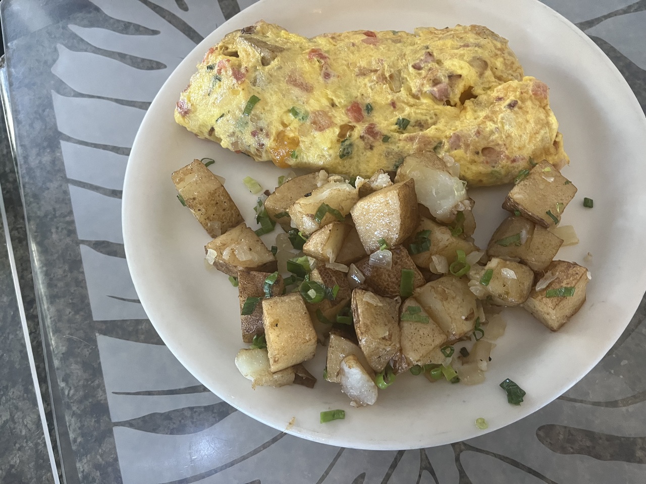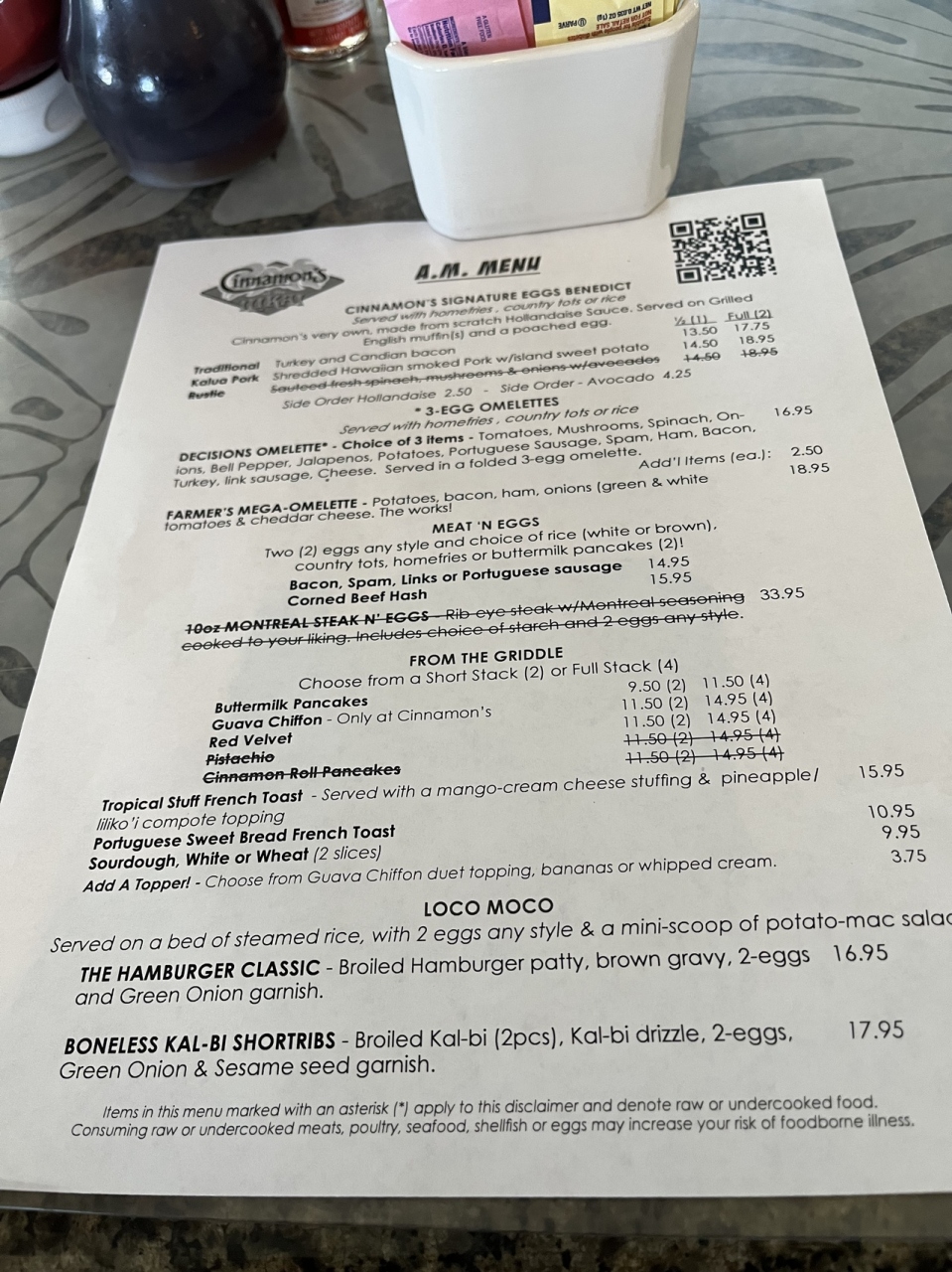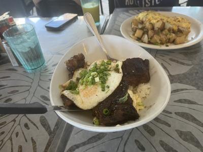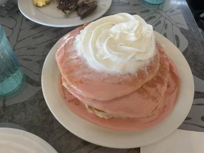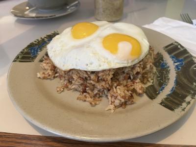ヒルトンハワイアンビレッジから歩いていけるイリカイホテルの中にあります。朝食どきなので15分程度待ちましたが、ヨットハーバーの景色などを見て待ち時間を過ごせます。グアバパンケーキ、オムレツ、ロコモコを頼みましたがロコモコはハンバーグロコモコを頼んだつもりですが、出てきた物はイメージが違いましたが美味しかったです。結構どれも量は多めかな。