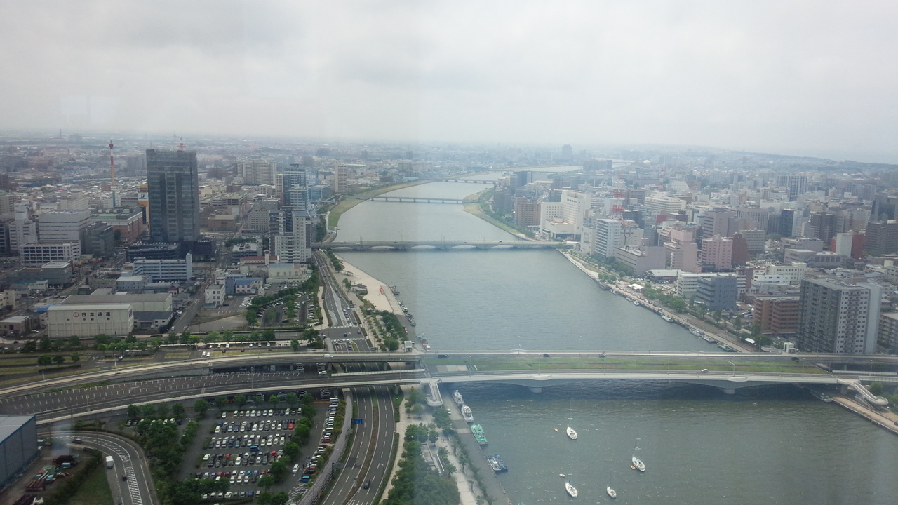 新潟のフェリーターミナルの側にあるコンベンションセンターにある ビルの31階の展望フロアです。360度というわけでなく一部見れない方向がありますが海側など大体の方角は見れますし、この眺望が無料だと思えば大満足です。エレベーターは3基の内1台が展望台用ですのでお間違いなく。ばかうけの会社の顔出しパネルやお土産コーナーなどもありばかうけや新潟のゆるキャラグッズなどが売られていました。
