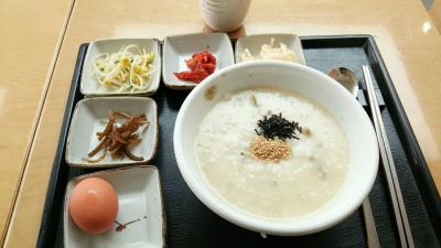 朝は一番好きなのはソルロンタンですがたまにはお粥も食べます。どちらにしようか悩んでも下がソルロンタン屋さんなので店のそばまで行ってその時の気分で選べます。