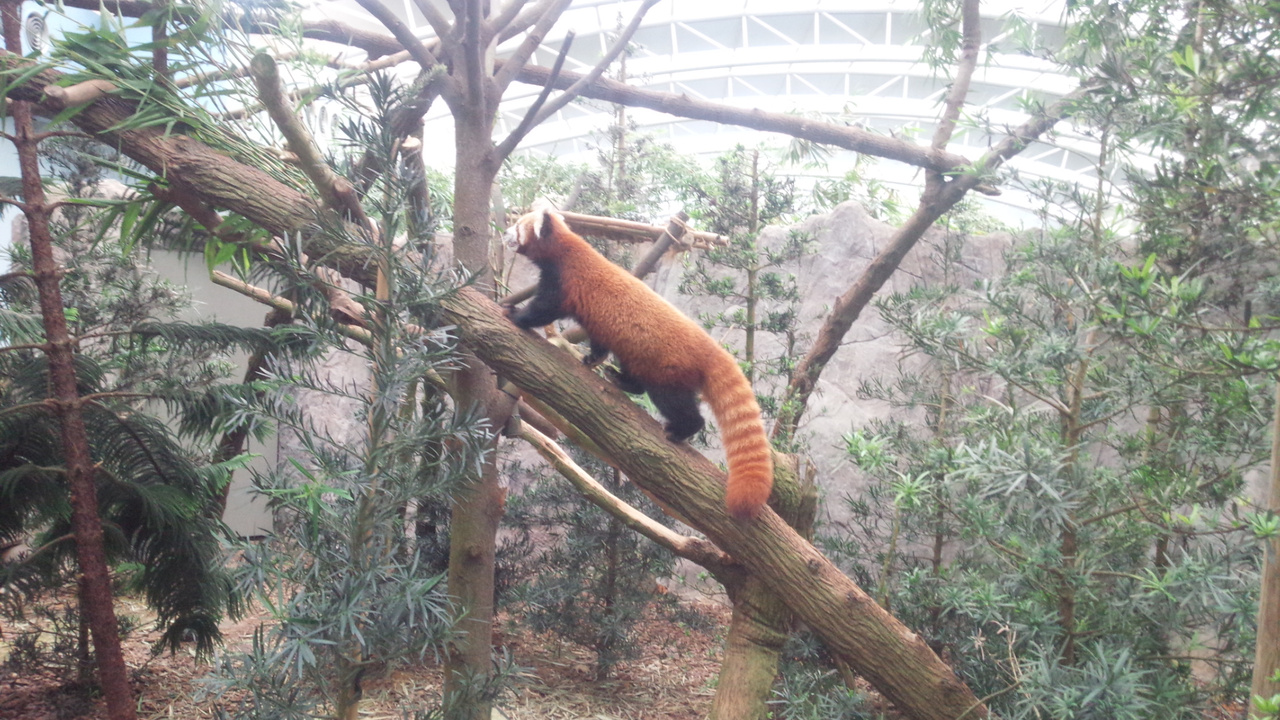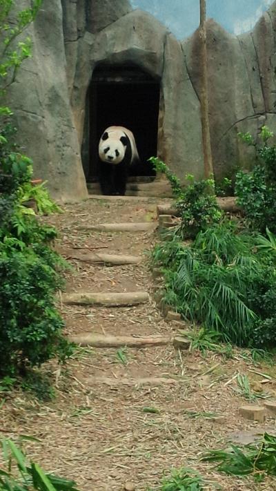 途中にある一番の見どころのパンダは朝は2匹とも寝ていました。中のレストランで食事をしてもう1度行くと動いていましたが、昼は1匹づつ休憩のようで1匹が出てくるともう1匹が岩の中の部屋に入って行ってしまいました。2周すると1度目に寝ていた動物が動いていたりして楽しめました。屋根のある所や室内で冷房の効いた所もあるので天気が悪い日や暑い日も意外と楽しめると思います。アマゾンリバークエストは船のスピードが意外と早く写真も撮りづらく時間も短いです。