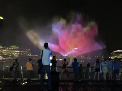 マリーナベイでしか見れないウォーターショーは水の幕に人が映し出されストーリー仕立てになっていますが、水なので映像の鮮明さが少し足りない感じでした。綺麗ではありますが、無理にその時間にマリーナベイ側にいるほどではないと思います。時間がなければ、レーザー光線などのライトショーを見るだけでマーライオン公園などで済ませてもいいかもしれません。