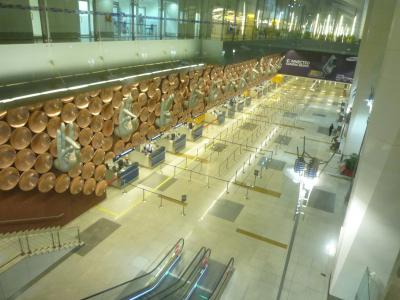 空港はとても綺麗で近代的でした。市内の混沌とした汚なさが嘘のようでした。私は12月に行ったのですが、12月、1月は霧が出やすい季節のようでタージマハルがそばでも見えないぐらい霧がひどくデリーも霧が結構出ていて、特に国内線は飛ばない事もあるようなので、注意が必要のようです。市内よりは高いようですがマックもあるのでインド料理に飽きた方はマハラジャバーガーを食べることもできます。