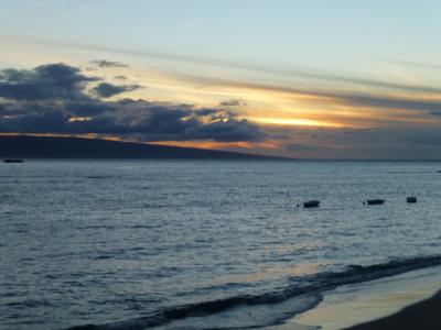 泊まったホテルからパパガンプシュリンプへ食事をする為レンタカーで駐車場も無料でした。ラハイナの街は昔捕鯨の港のだったの面影が、おみやげ物屋の看板などに残っていました。夕暮れ時はとても綺麗な夕日を見ることがでるので、マウイに来たら是非夕方ラハイナに行った方がいいと思います。
