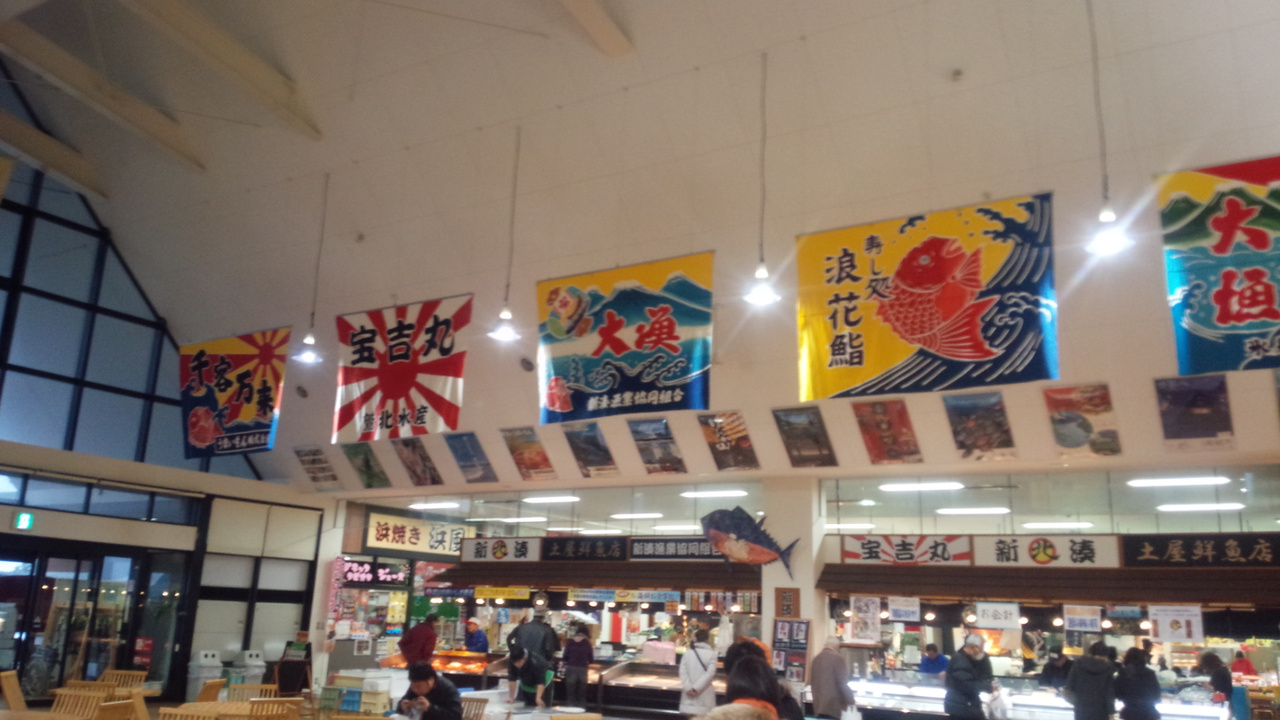 お土産を買うついでに、海王丸パークや新湊大橋を遠目でみようといってみましたが、雪がひどくなってきて、海王丸や橋は断念しました。海鮮の店では、大きなまるまるのぶりが4万8000円で売られていました。魚を買うと調理代を払って食べれるようでした。中の土屋鮮魚店で紅ずわい蟹を買ってお土産にしましたが美味しかったです。でもここを目的地にする所ではないと思います。