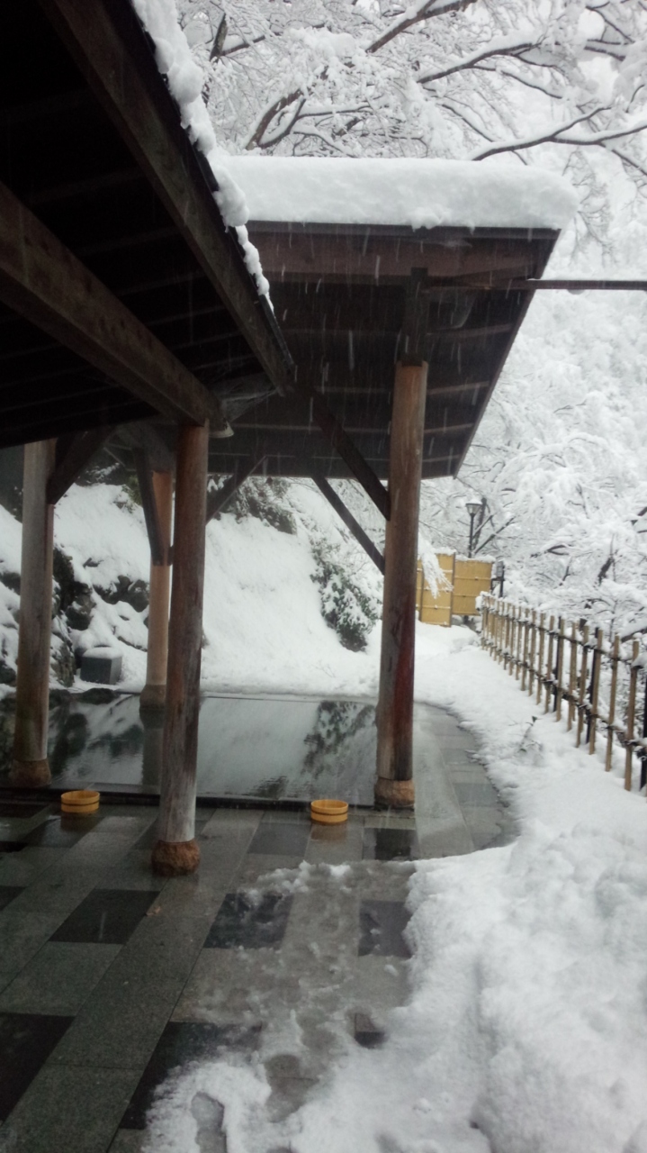 温泉もよかったのですが、結構雪が降っていたので露天風呂に行くのに長靴を履き傘を持っていくので行こうか少し悩みましたが、女性用露天風呂はちょうど誰もいなくて秘湯感たっぷりでいい景色でした。