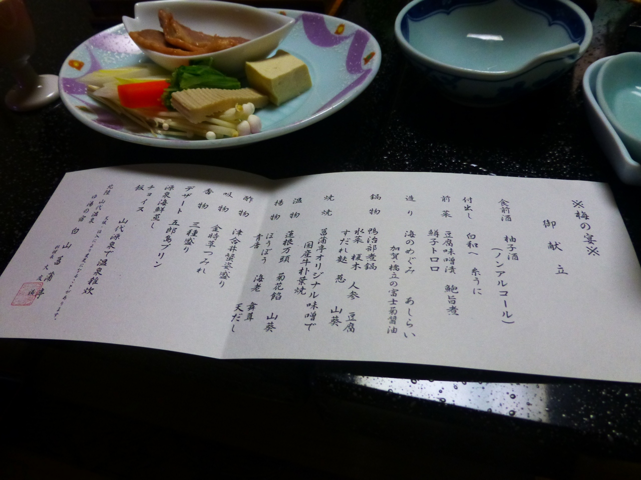 蟹付きのの夕食だったのですが、蟹は翌日に買った東尋坊近くの蟹屋さんにくらべると落ちますが全体的に美味しい料理でした。- 旅行時期