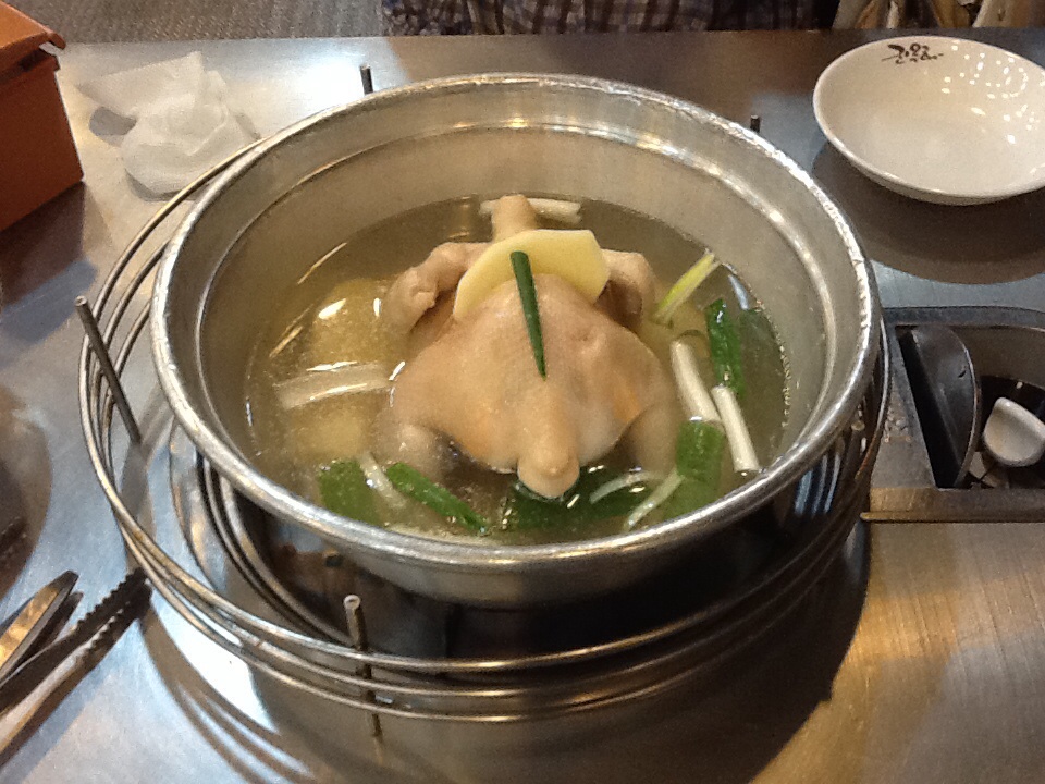 烏骨鶏の参鶏湯の方が高麗人参が効いている気がします、暑い夏に土用のうなぎのように韓国では参鶏湯を食べるのがわかる気がします。