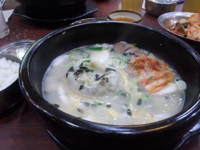 今までに何度か食べていますが、マンドゥ入りか何も入ってないソルロンタンを食べていました。旦那とマンドウともちを交換して食べましたが、今回トック入りを始めて頼んでみたら、餅の量がけっこう多くて残してしまいました。味はいつもどうり朝食にぴったりの味でした。タイミングにより結構並んでいる人がいる場合もありますが、回転がいいのでそんなには待たないと思います。