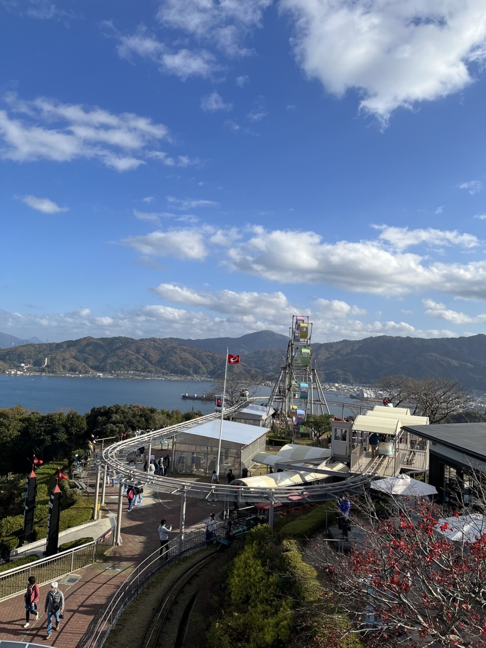 天橋立といえば股のぞきのイメージですがビューランド側と傘松公園側の両側から股のぞきできます。モノレールかリフトで上に登れます。モノレールは出たばかりだと結構待つので天気のいい日はモノレールがいいかもしれません。ビューランドはミニ遊園地になっていて観覧車、ミニSLなどがあり、お子様も楽しめそうです。漕いで走るモノレールの様な乗り物はカップルの方なども乗っていました。股のぞきを楽しみ、天空回廊という少し高いところからの景色も見ることもでき絶景でした。