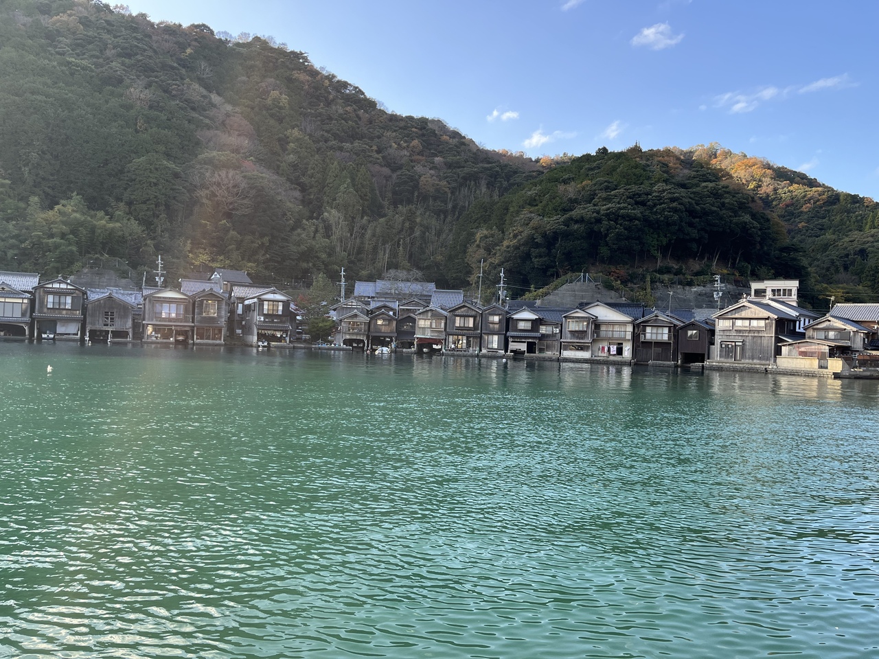 天橋立で時間がかかったので駆け足での観光になったしまいましたが、行きたかった伊根の舟屋を見る事ができました。伊根の舟屋は道を挟んで母屋と舟屋がセットになって住んでいたそうです。昔の漁師町なので狭い道も多く、人も歩いているので車で通る時は気をつけてください。伊根公園駐車場が22台、七面山駐車場は72台駐められる様ですが観光シーズンにはいっぱいで駐められないかと思います。ちょうど近くに駐車でき、どちらの駐車場も最初の30分は無料だったので、無料で駐車できました。伊根公園や七面山駐車場あたりから見る舟屋が沢山並んでいて海に映えとても素敵でした。