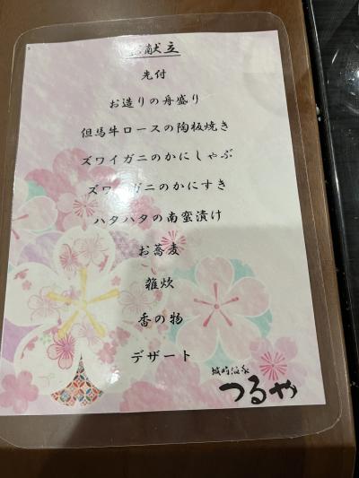 蟹のシーズンに城崎温泉に泊まりたく、全国旅行支援が使えるお宿を探しました。我が家は部屋にトイレがあるのが絶対条件なのでつるやさんはトイレなしの部屋も多いのですが、トイレがある部屋が空いていたので選びました。建物は古いですがトイレは部屋の物も共用の物もとても新しいウオシュレットでした。場所は駅方面から来ると一番はずれですがすぐ近くに外湯のこうの湯さんもあり車の方なら不便ではないです。エネオスさんがやっている駐車場と提携していて駐車場も近めでした。蟹は焼きガニや刺身などはありませんでしたが蟹しゃぶと蟹スキがとても美味しいかったです。朝食も美味しく、家庭的な接客も良かったです。館内の温泉は1度のみ旅館内の貸切温泉を先着順で時間を選ぶシステムでした。城崎では外湯めぐり中心の宿も多いので天気が悪くなければこうの湯さんやまんだら湯さんも近いので不便はないかと思います。