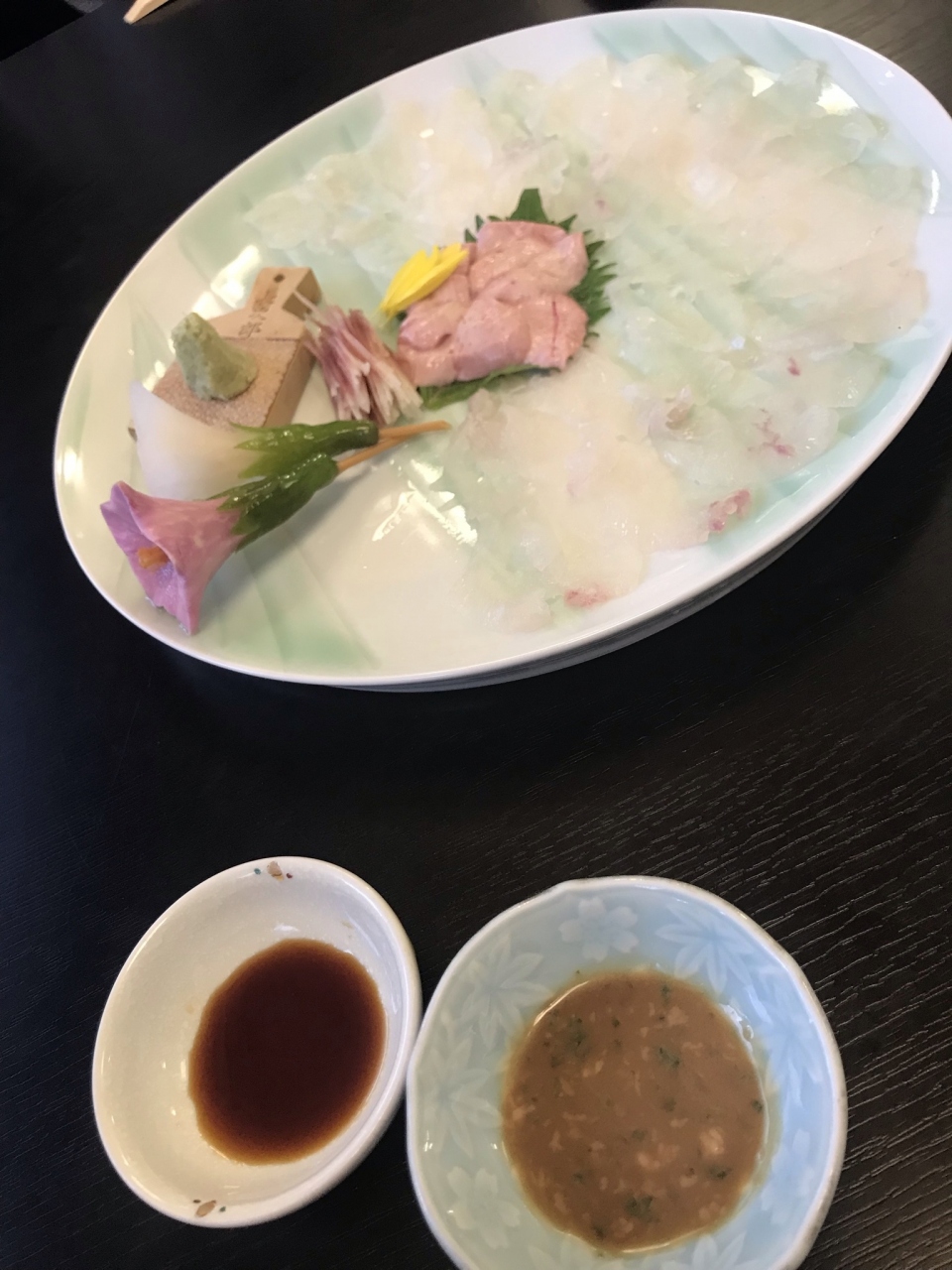 白井にある割烹料理店です。門構も昔の割烹料理店という感じです。生簀がありそこから今回はカワハギをきも醤油で食べましたがすごく美味しかったです。松花堂弁当、本日の刺身定食などを頼みましたが、松花堂弁当の豚の角煮は少し硬めでした。全体的には美味しいお店です。ただ日曜日で法事等があって人手不足なのか割烹でそれなりにいいお値段ですが接客はイマイチでした。予約ですがふぐ1匹コースなどもあるのでそのうちまたチャレンジしてみます。