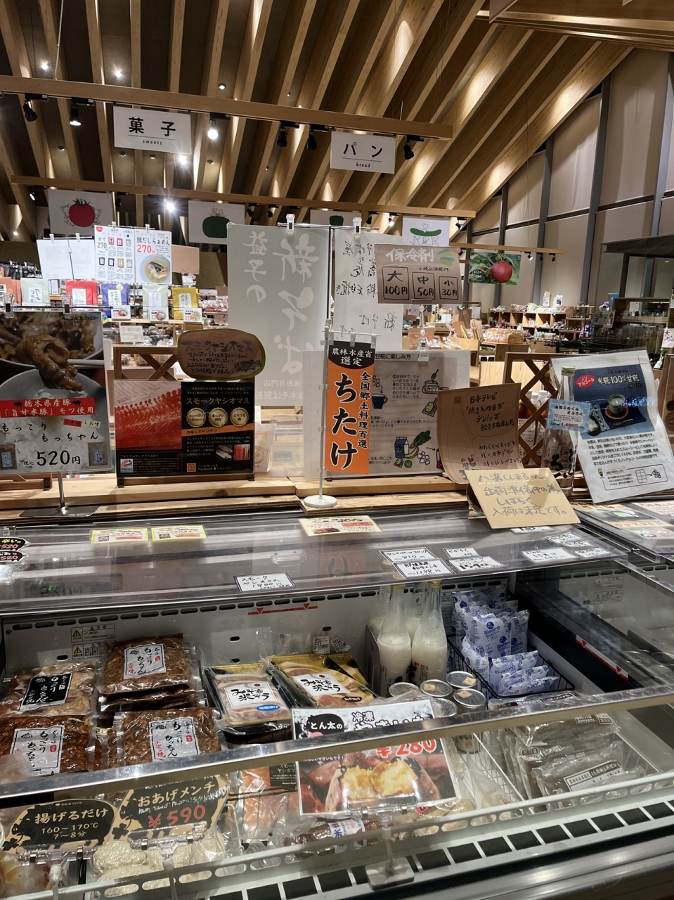 コロナの非常事態が開けて初めての日曜だったせいか、駐車場がとても混んでいて停める場所を探す感じでした。ゆずが名物なのかゆず推しのお土産が多かったですが、農産物なども豊富でお土産の品揃えはよかったです。