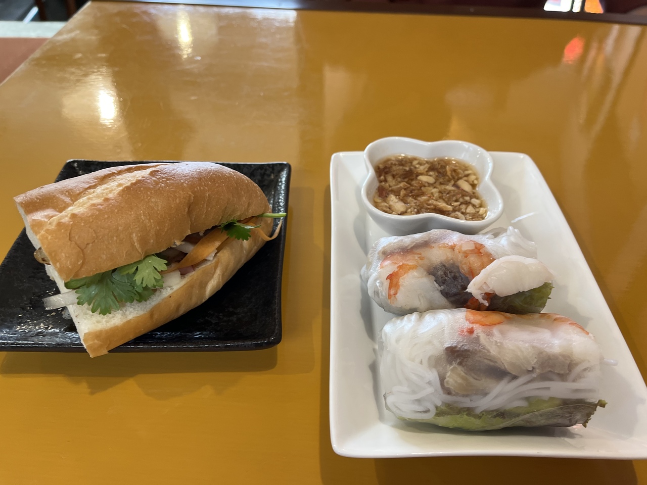 ベトナムの方がやっているベトナム料理店です。お客さんもベトナムの方が来ていました。昔は焼肉屋さんをやっていたお店に手を加えた感じでテーブルをよく見るとわかりますが全くお洒落な感じではありません。牛肉と鶏肉のフォーをひとつづつ、バインミー、生春巻きを頼みました。フォーは出汁がよく出ていて具も多くて美味しかったです。今度成田にもお店を出すようです。