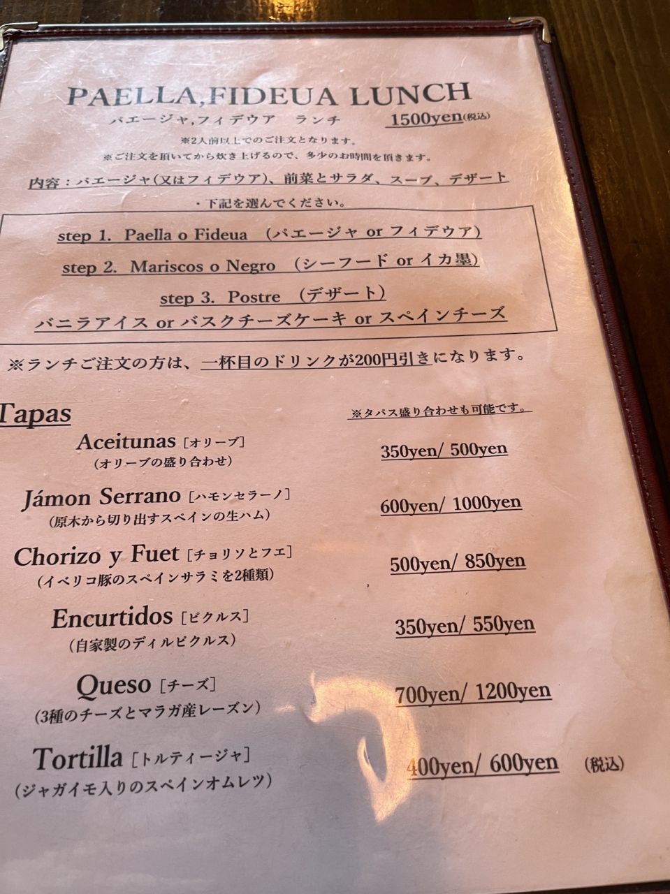 情報は夜のみの営業の様ですがコロナ禍でランチ営業もやっています。パスタランチを頼み単品でスモールサイズの生ハムと、チョリソとフエのセットを頼んだのですが美味しかったです。パエリアも魚介の旨味たっぷりで美味しいかったです。駅からちょっとだけ距離がありますが、十分徒歩圏です。近くには柏でとんかつの有名店瓢さんなどがあります。