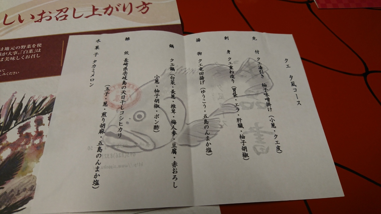 名前のとおり長崎名物しっぽく料理のお店ですが、クエ鍋コースがあったのでそちらを食べてみました。クエは33キロという大きなものだったようで以前食べたものより少しコッテリ系で濃厚な味わいでした。結構量もありお腹いっぱいになりましたが、ただ刺身に出てきた鰭的なものは私も夫も一口だけ食べましたが食感がどうしてもダメでどうしても食べれなかったです。卓袱料理浜勝さんはリンガーハットやとんかつ浜勝さんと同じグループなので、店構えも高級な感じで素敵ですが敷居の高いコースの卓袱料理も少し手軽なコースもあります。