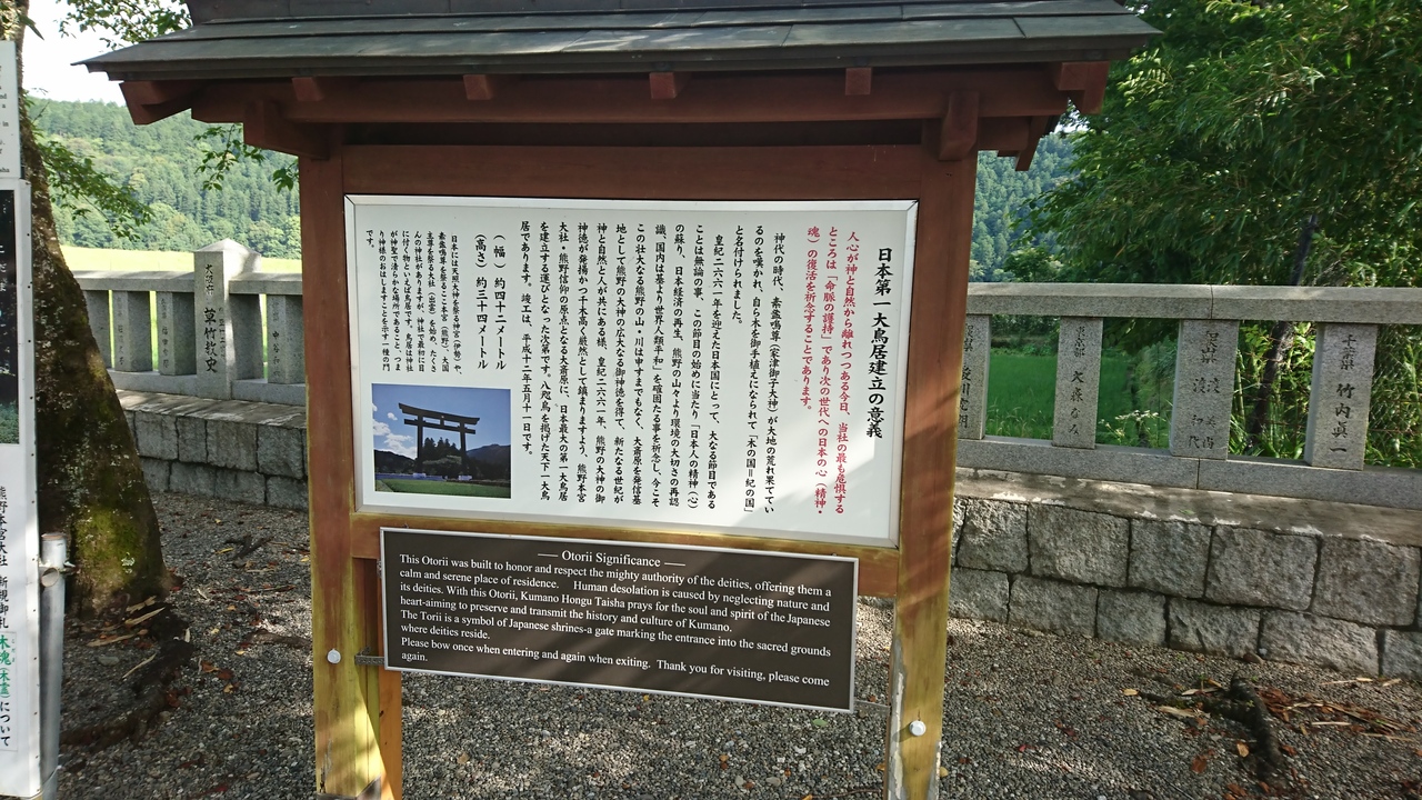 日本一の大鳥居が本宮大社から少し離れた場所にあるという認識しかなかったのですが、明治22年の大洪水までここに本宮大社があったとは訪れて初めて知りました。大きな神社って少し離れた所に鳥居がある場合もあるので不勉強でした。石の祠が残るのみですが、夕方で2人の方が掃き清めていらっしゃいました。建物がない事が逆に雰囲気がありました。大鳥居は2000年に竣工された物のようですが、熊野本宮大社まで行ったら是非こちらも訪れるべきです。