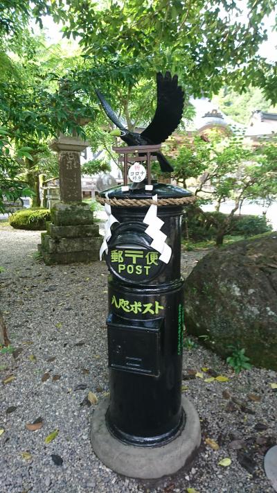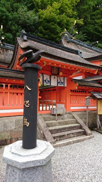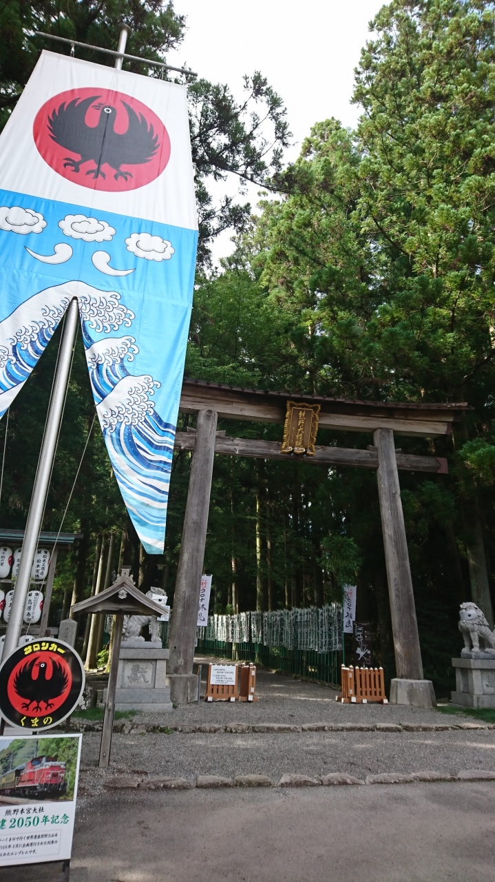 熊野那智大社、熊野速玉神社は朱色の建物でそちらも素敵な雰囲気なのですが、全国の熊野神社のもととなっているだけあって、熊野本宮大社は檜皮葺きでかえってそれがよりいっそう荘厳な雰囲気を醸し出している気がします。一の鳥居の横の幟の八咫烏や八咫烏の黒いポストなど神の使いの八咫烏が印象的でした。ただ八咫烏ポストはそんなに目立つところにはないので通り過ぎそうになりました。八咫烏まで緑のマスクをしていました。