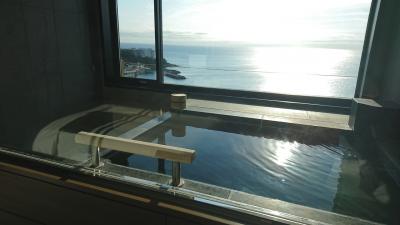 温泉付きの部屋泊まりました。部屋の温泉は温度が少し低めかもしれませんが、夏にはちょうどよかったです。大浴場に行くと白浜の景色が一望できていい景色ですが。コロナ禍には温泉付きの部屋が最高です。