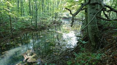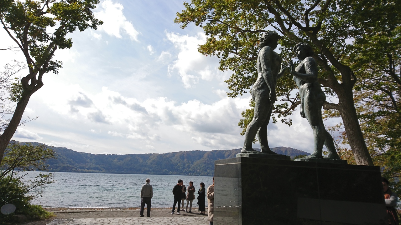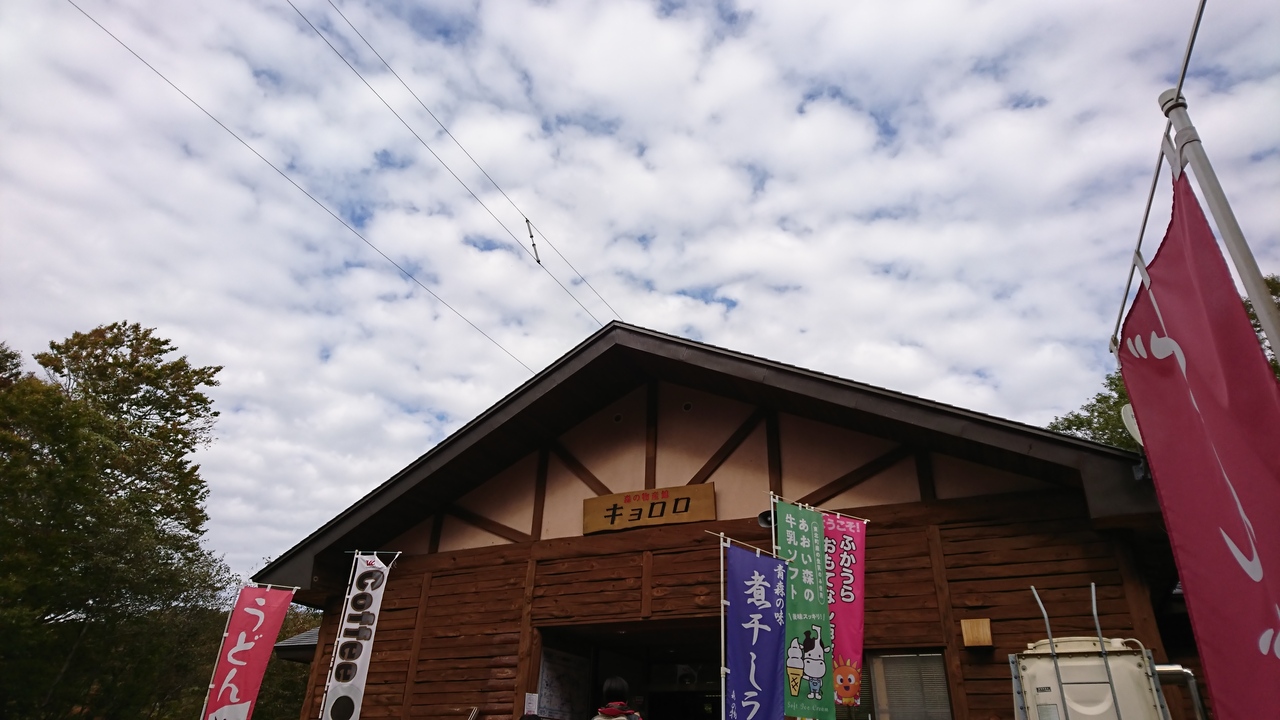 十二湖の青池の散策コースに一番近い駐車場の側にある物産館で、軽食やソフトクリームなどもあります。お土産ものは別にここで買わなくてもいいかなと思いますが、すぐ前がバス停なので時間があれば軽食やソフトクリームや飲み物を散策後に買ってもいいかな。