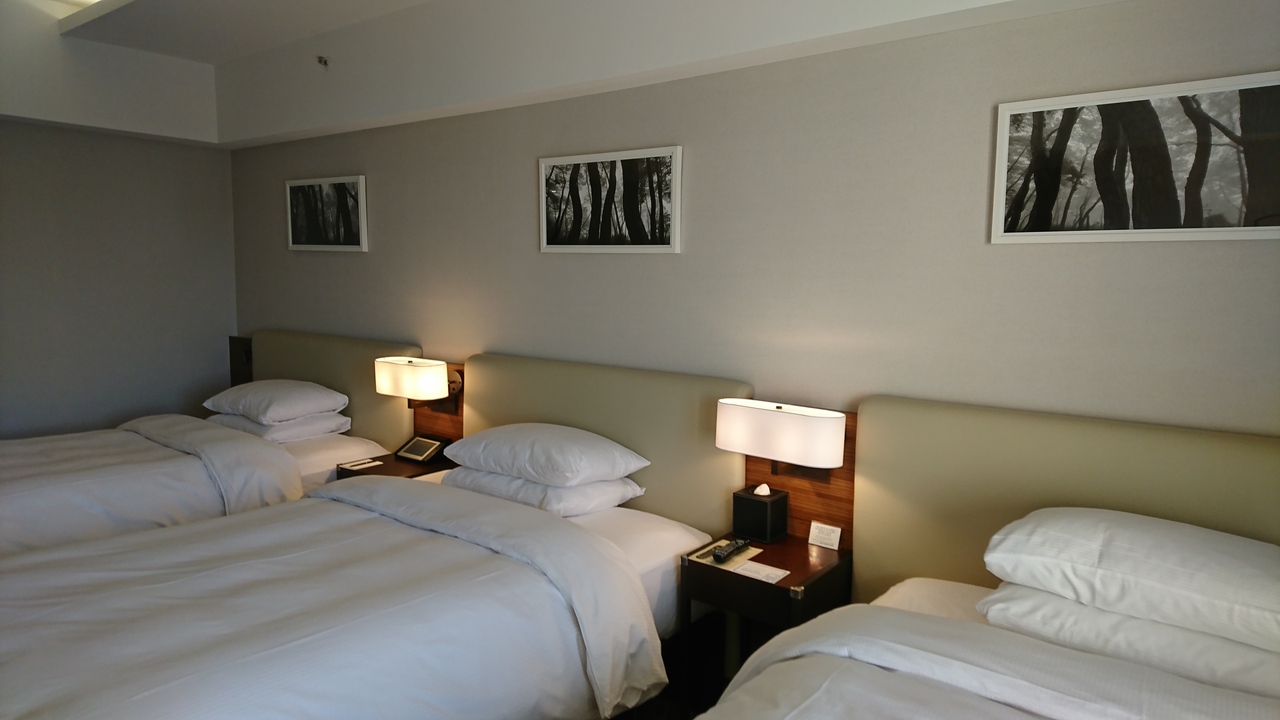 3つベッドのあるトリプルルームがあるのが決め手で選びました。場所は湖に面していて遊園地も見えていい景色です。部屋も広くて、バスルームも問題はありません。ただラウンジもなく1泊33,000円くらいしてそれほどコスパがいい気はしません。